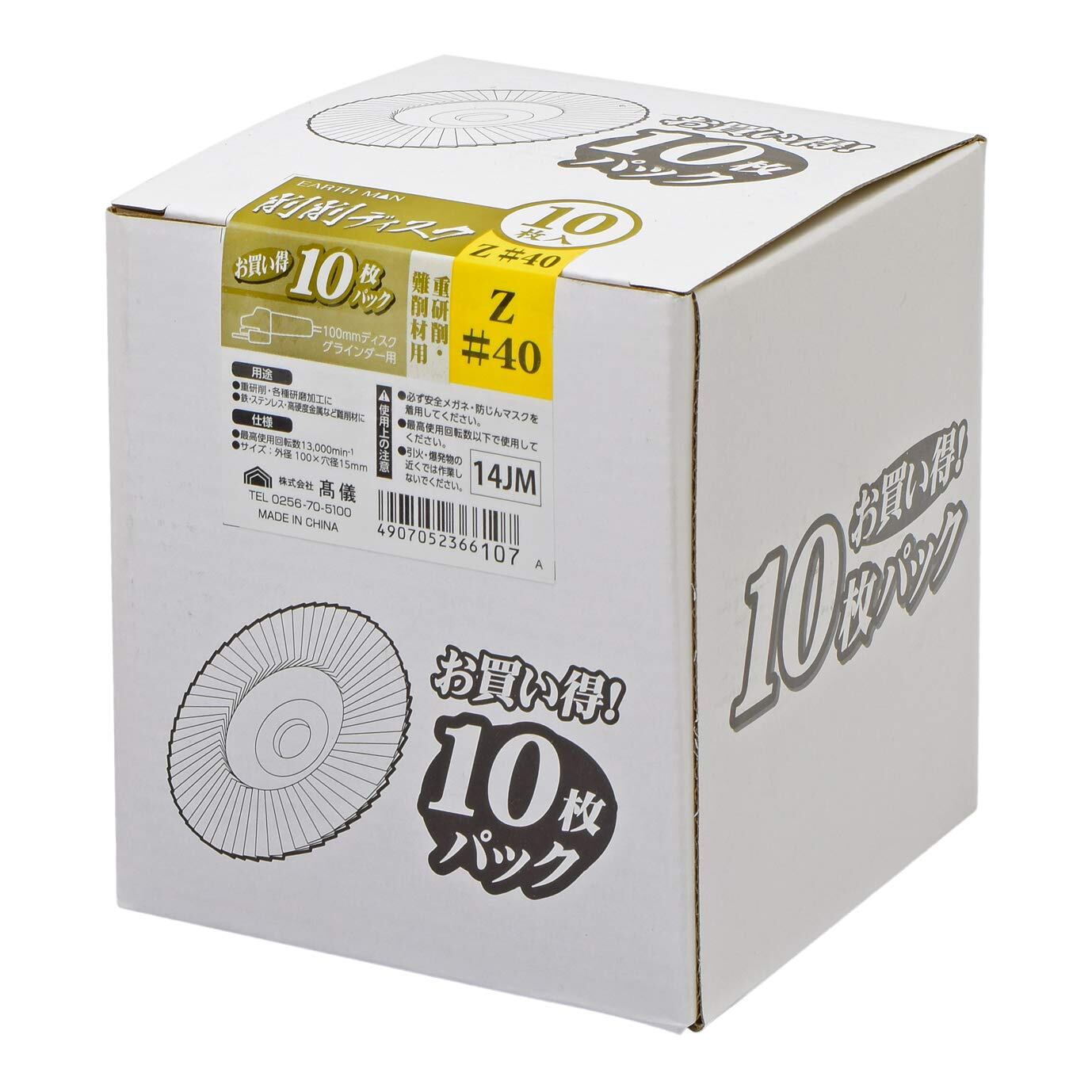 高儀(Takagi) EARTH MAN 100mmディスクグラインダー用 削削ディスク Z #40 10枚入