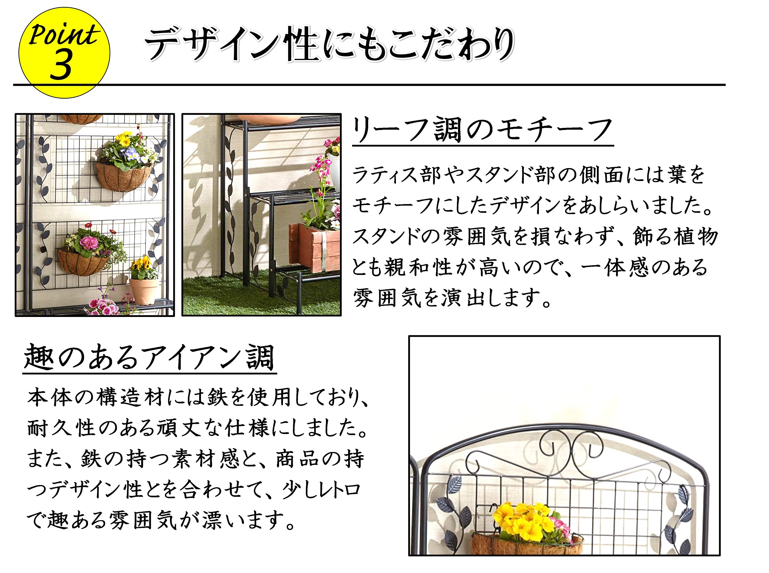リビングアウト(Living Out) アイアンプランタースタンド ラティス付き 3段タイプ