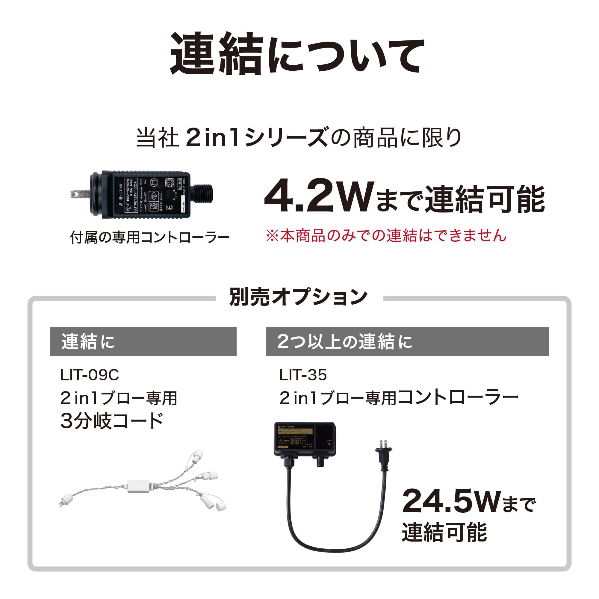 ※本商品のみでの連結不可。連結には、当社2in1ブロー専用3分岐コード(LIT-09C)(別売)をご使用ください。他社商品の連結は危険ですのでおやめください。