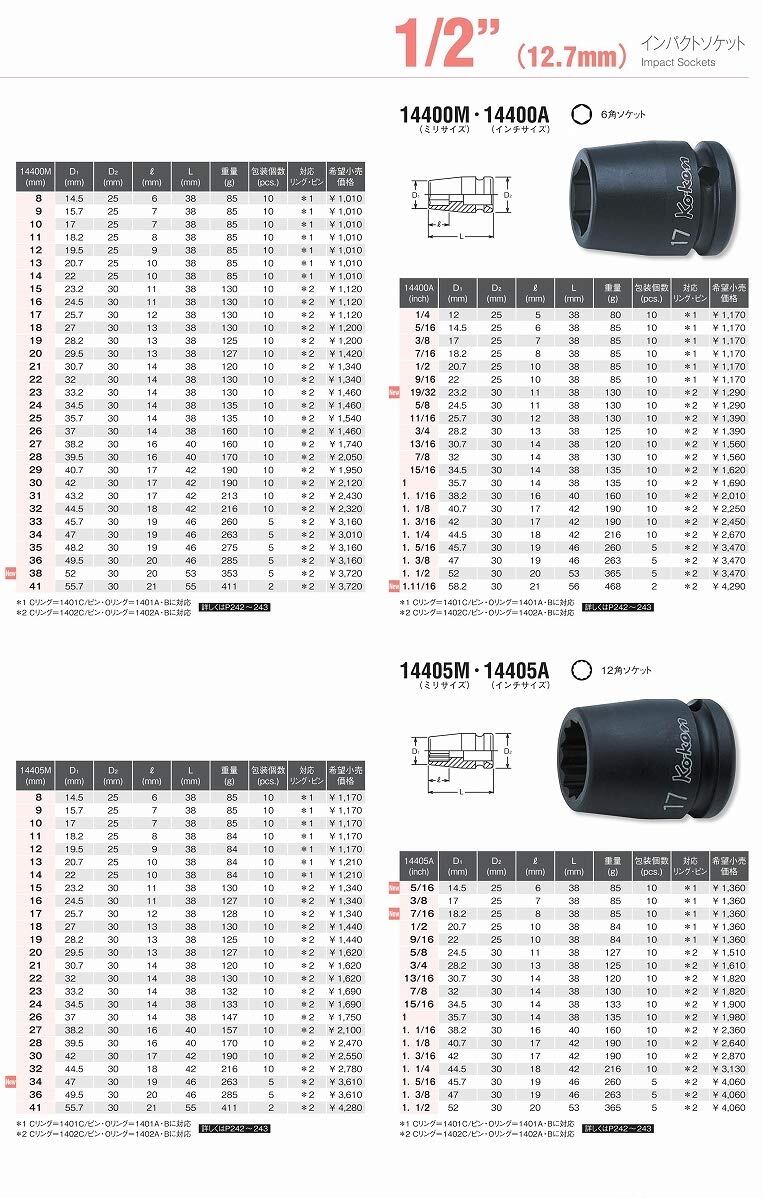 コーケン 1/2(12.7mm)SQ. インパクト6角ソケット 38mm 14400M-38