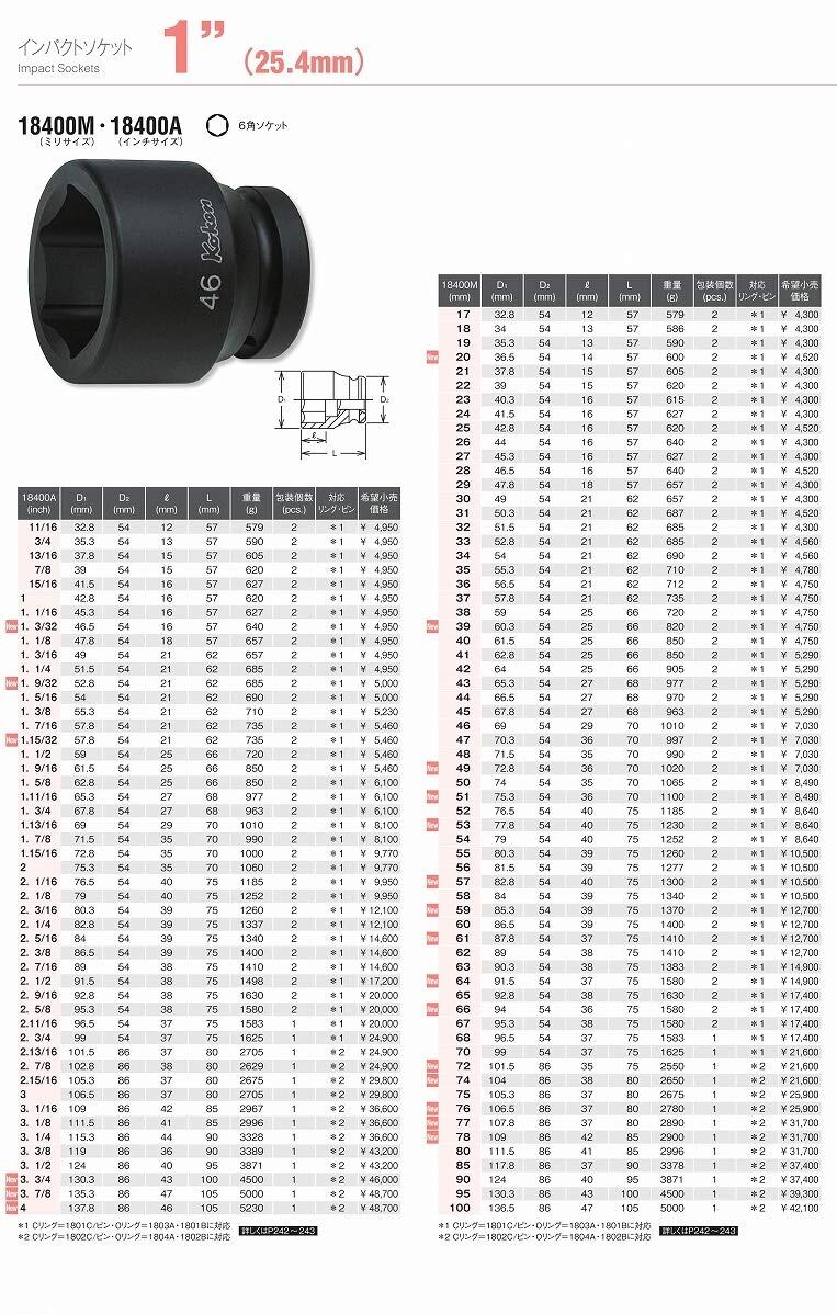 コーケン 1(25.4mm)SQ. インパクト6角ソケット 51mm 18400M-51