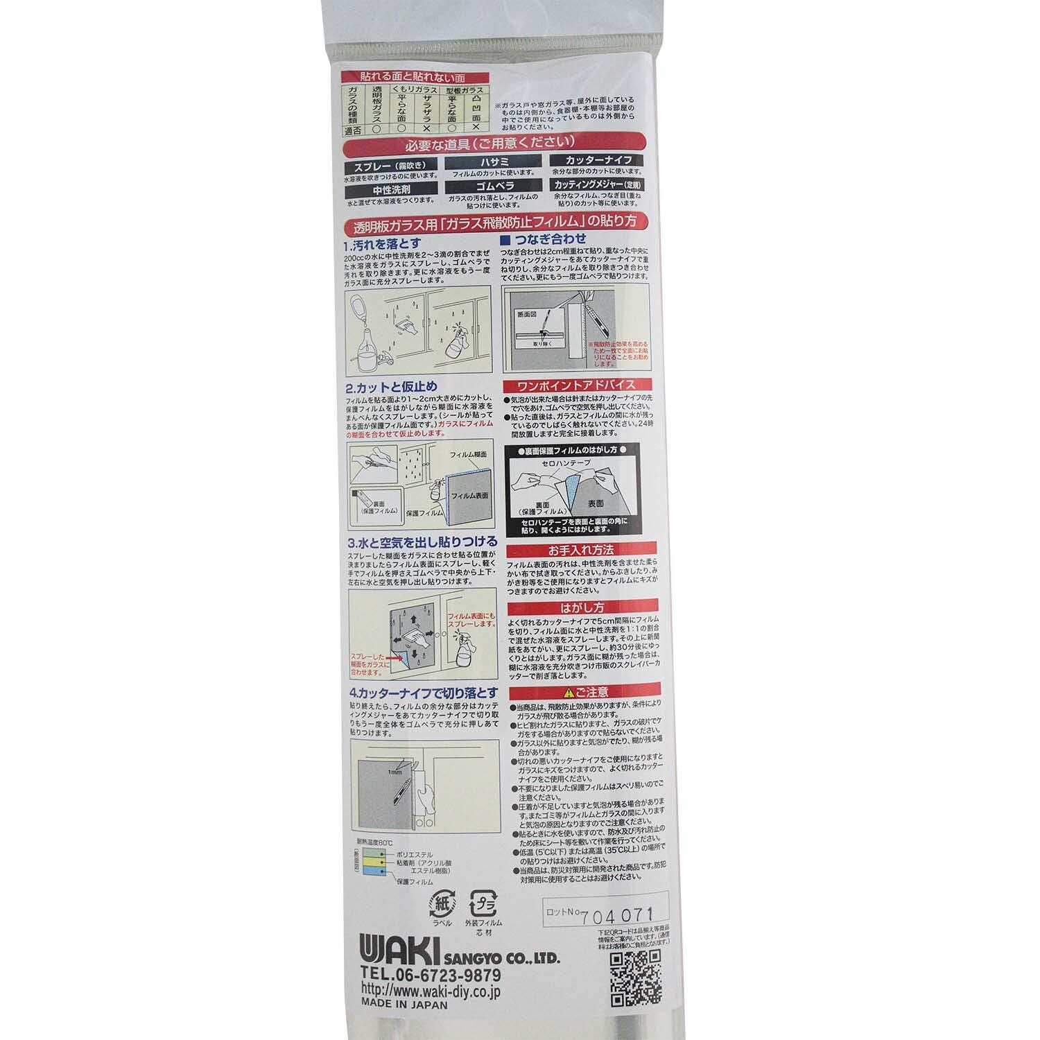 和気産業 ガラスの飛散防止フィルム 46cmX185cm 地震 台風 防災 WF-005