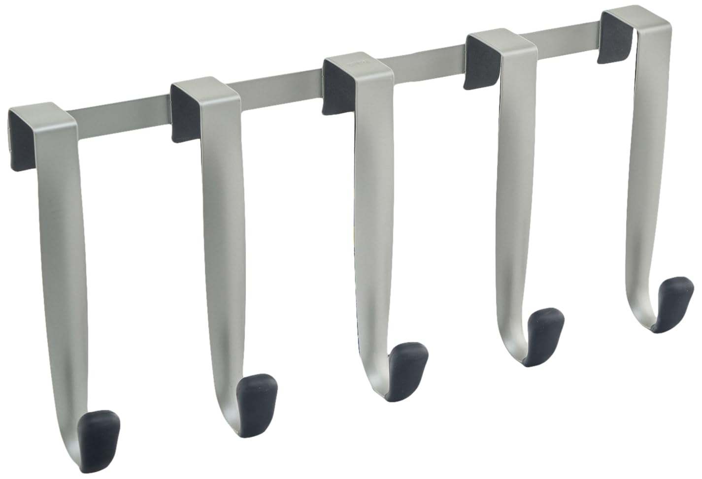 スックヌックの両端には黒いゴムがついています。ドアフックの上部にあるゴムは、ドアの保護材として機能し、そしてフックがスライドするのを防ぎます。服をかけるフックの先端には、服が絡んだり滑ったりするのを防ぐゴムがついています。1つのフックの耐荷重は約2kgです。シングルフックのサイズはW25xH203mm、3フックは、W229xH203mm、5フックW432xH203mm。カラーはニッケル/ブラック。スックヌックフックは、あなたの家のどの部屋にも簡単に収納場所を増やすことができます。