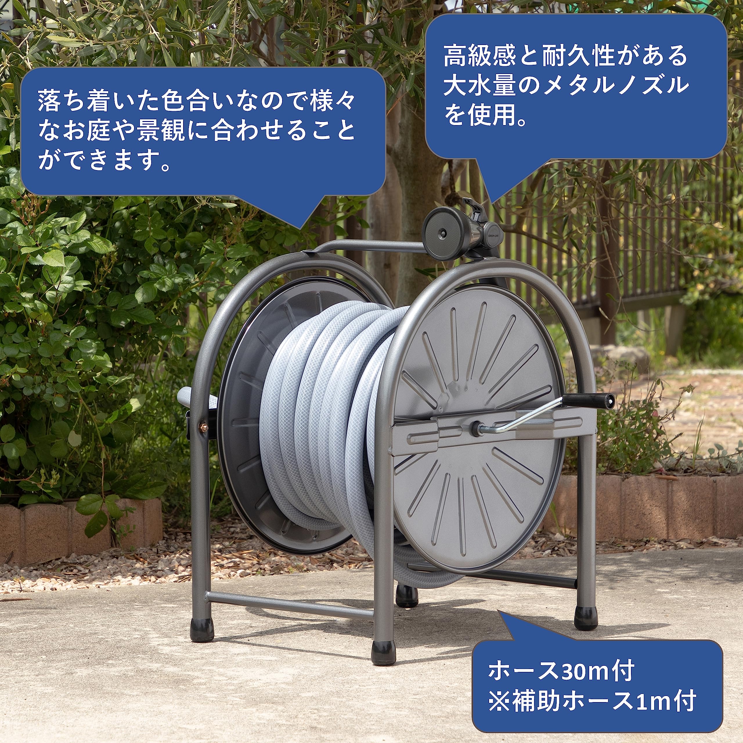グリーンライフ ホースリール ホース 30m 大流量ノズル 耐久性が高いスチール製 ホース内径15㎜ グレー おしゃれ HR-L30D(GY)