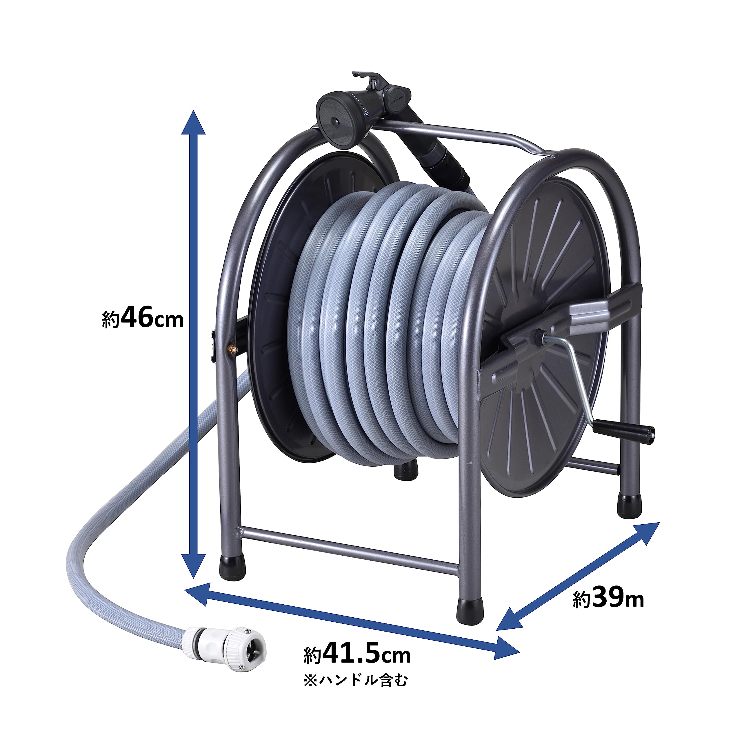【製品サイズ】本体:(約)幅41.5×奥行39×高さ46cm(ハンドル含む) ホース:内径/15mm、長さ/主ホース30m・補助ホース1m