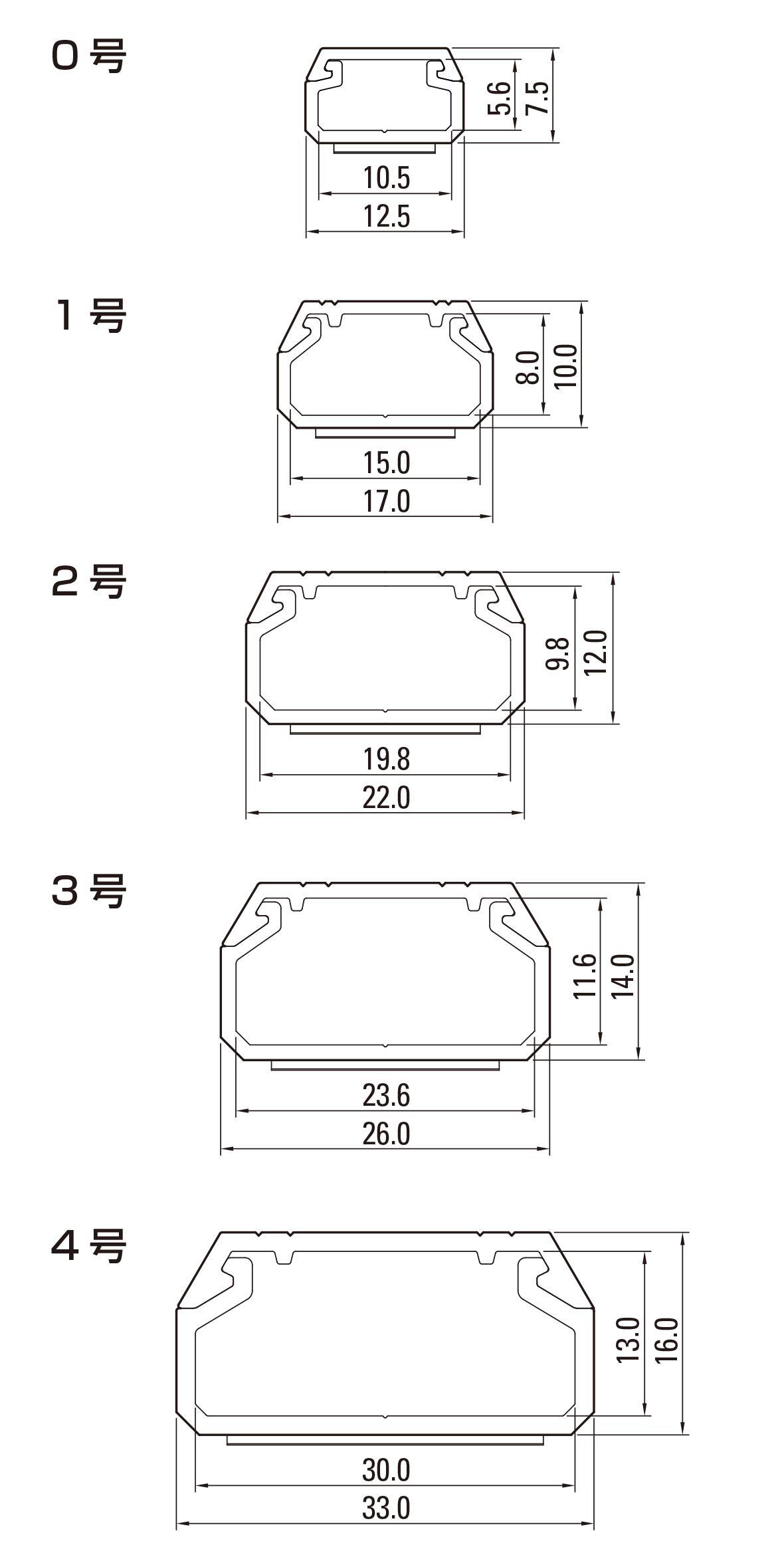 取付け用のビス穴 直径4mm が3穴あります。 0号は除く。