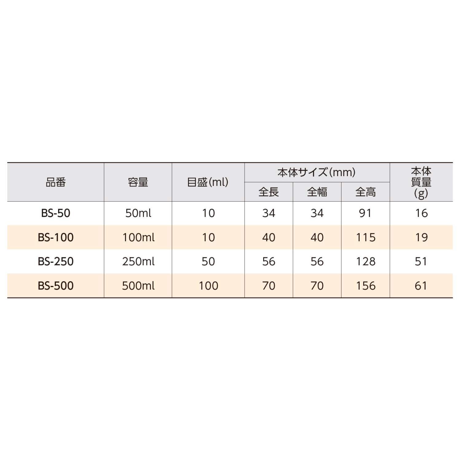 【最新商品】新潟精機 BeHAUS 日本製 ポリ角ビン 中栓付 250ml BS-250