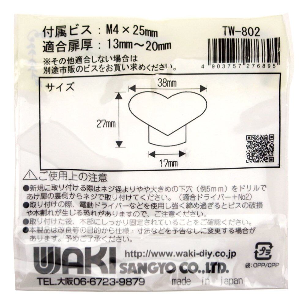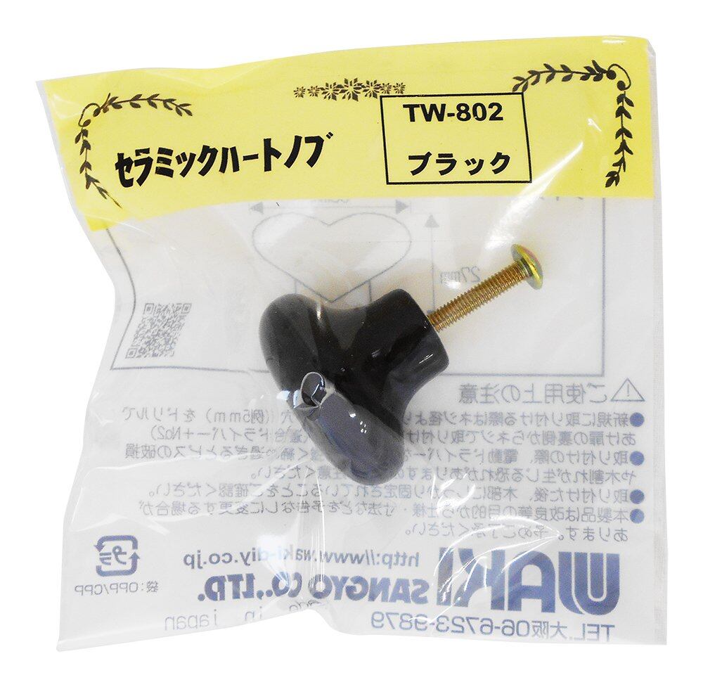 WAKI セラミックハートノブ 黒 適合扉厚13~20mm TW-802