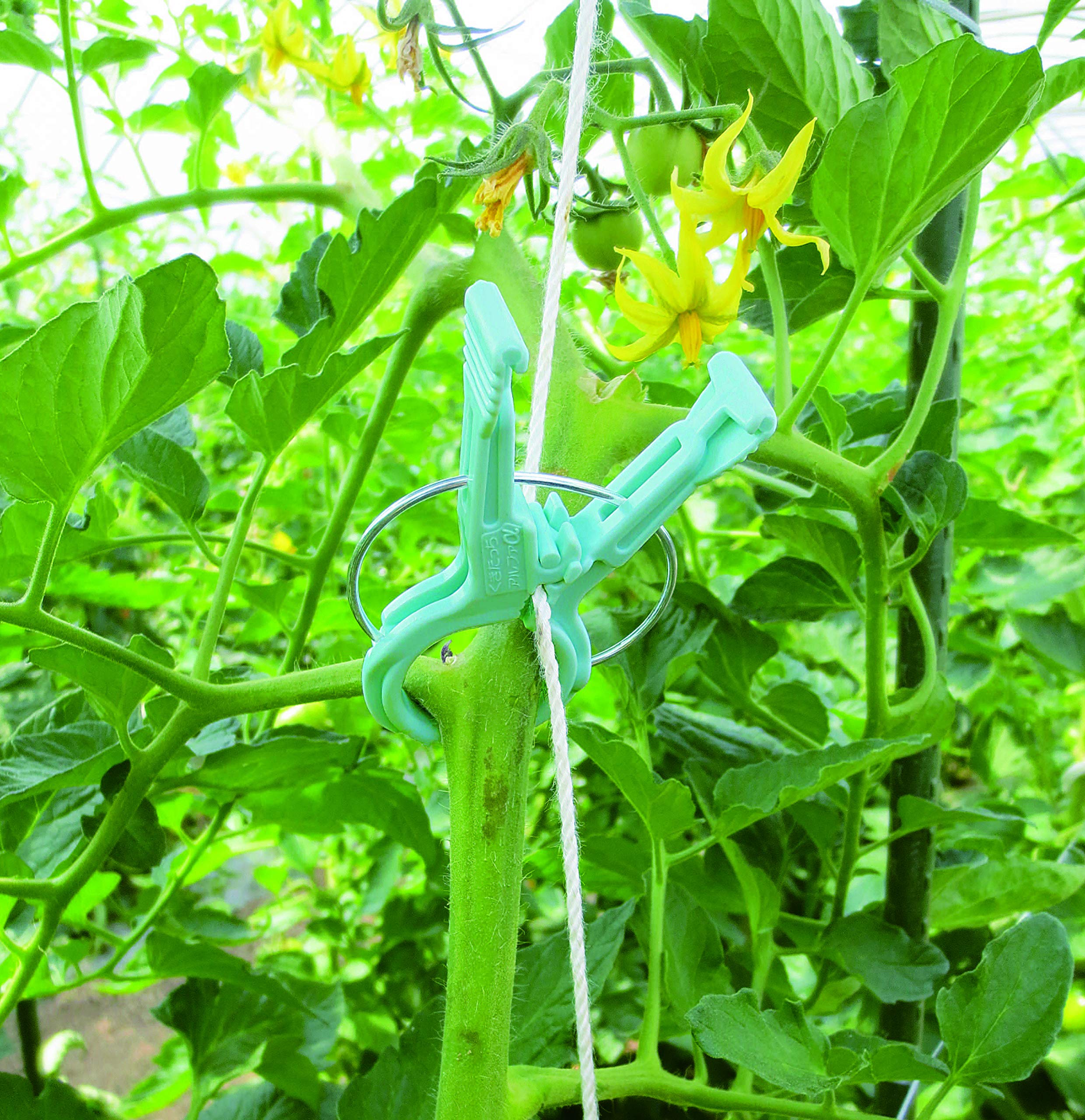 支点部がダブルフックなので耐久性があり、太紐を挟んでも支点部が浮き上がらないので紐を強く挟み込めます。 誘引作業の時間短縮に! 縦ひも誘引や横ひもへの誘引が簡単にできます。 長期間繰り返し使っても、きしむことなく、スムーズに開閉できます。 ひもの挿入口が大きく開くのでひもを挟むのが簡単です。 茎保持部内径寸法:24mm 材質:耐候性ポリプロピレン ※200個パックでの価格、納品になります。
