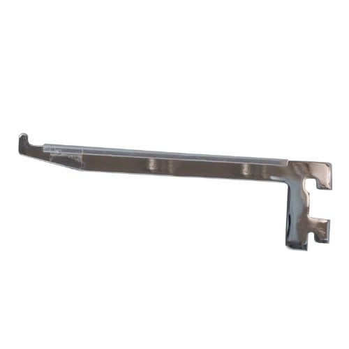 スリット穴掛け式棚等設置システムの、ガラス棚専用腕金具、スリムブラケット。(先端前ズレ防止構造付き)
