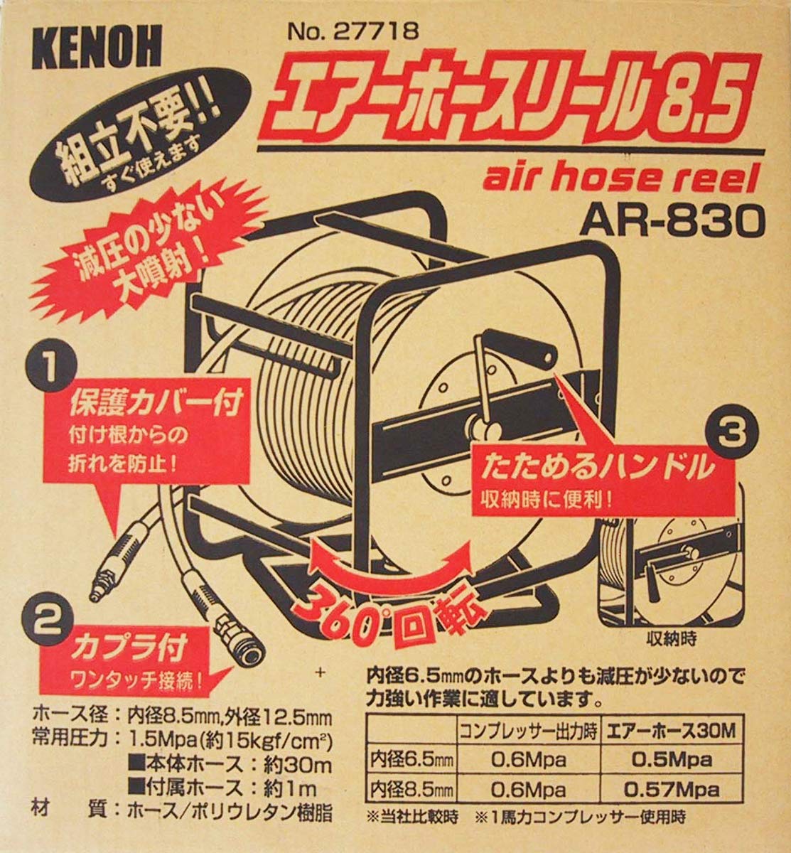 KENOH エアーホースリール8.5 30m巻