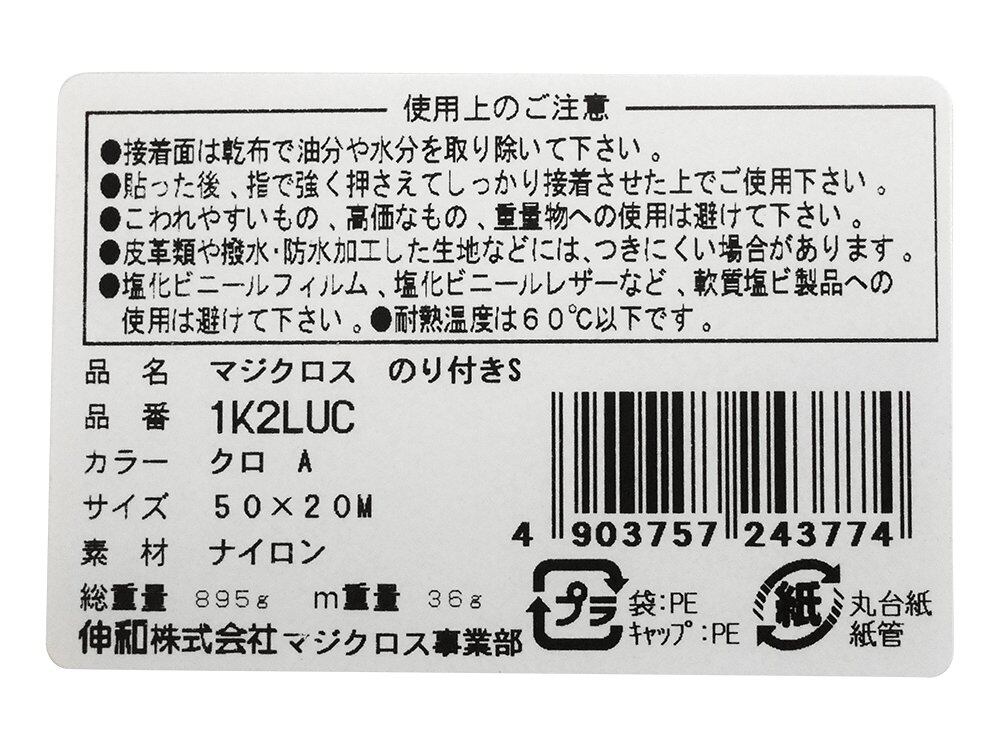 【限定特価】シンワ マジクロス のり付きS A面 50mmX20m 黒 1K2LUC