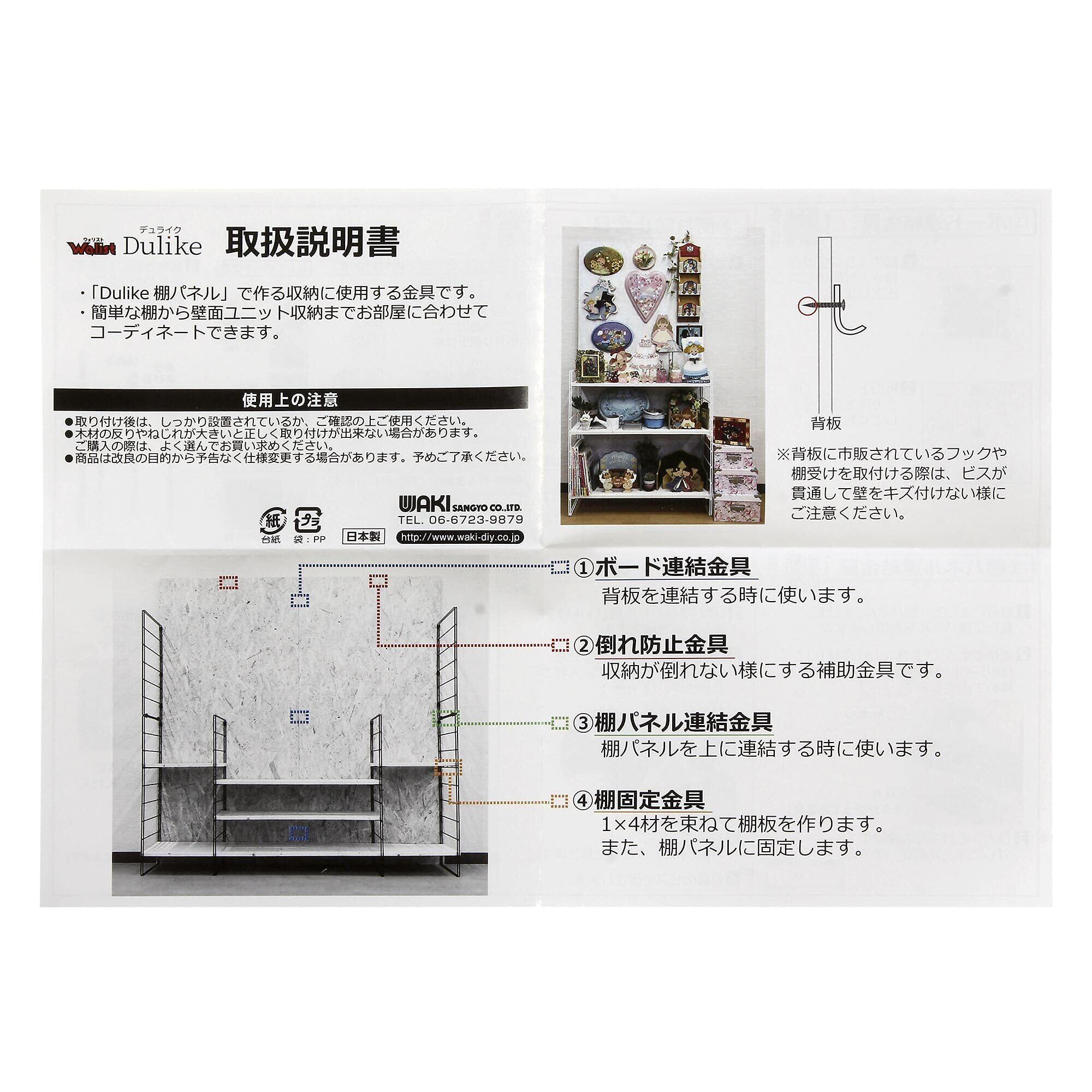 和気産業 壁面収納 Dulike デュライク 棚パネル連結金具 白 4個入