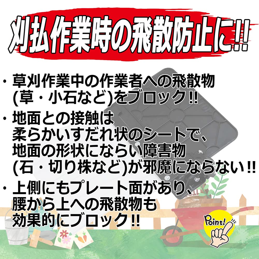 ・草刈機のサオより上側にもプレート面があるため、腰から上への飛散物も効果的にブロック