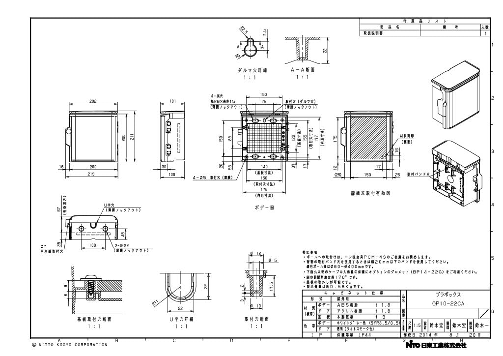【最新特価】日東工業 プラボックス・透明扉(屋根付) OP10-22CA 色彩:ボデー:ホワイトグレー色(5YR8.5/0.5) 扉:ライトスモーク色