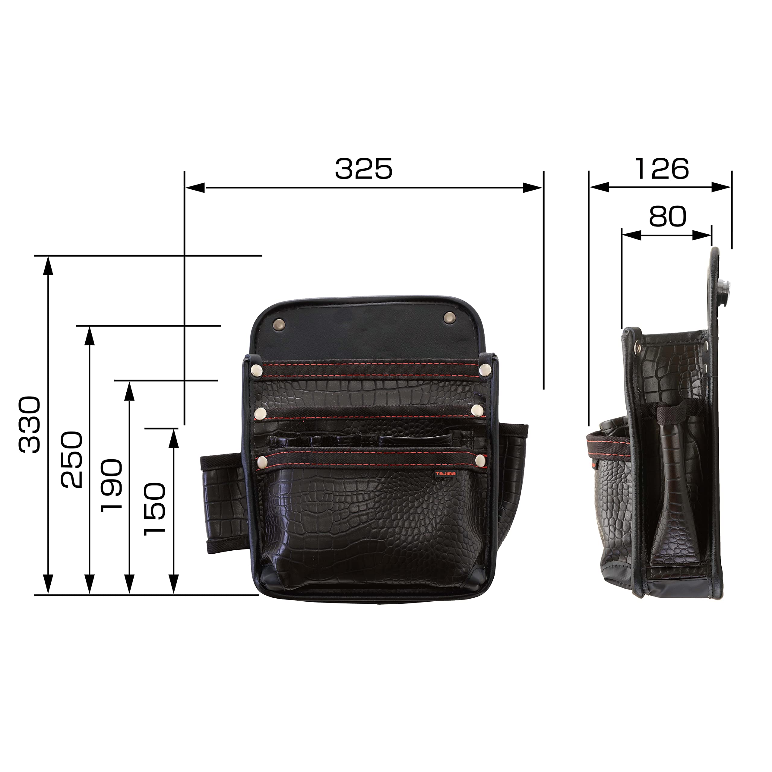 タジマ セフシステム 着脱式腰袋 ツインフック クロコ 釘袋3段大 高強度でしなやかな高耐久合成皮革 SFKBG-KG3L2H 着脱楽々 ベルトに後から装着可能 腰道具の組み換えが簡単 使う道具だけを選んで装着 腰の負担軽減 工具の落下防止