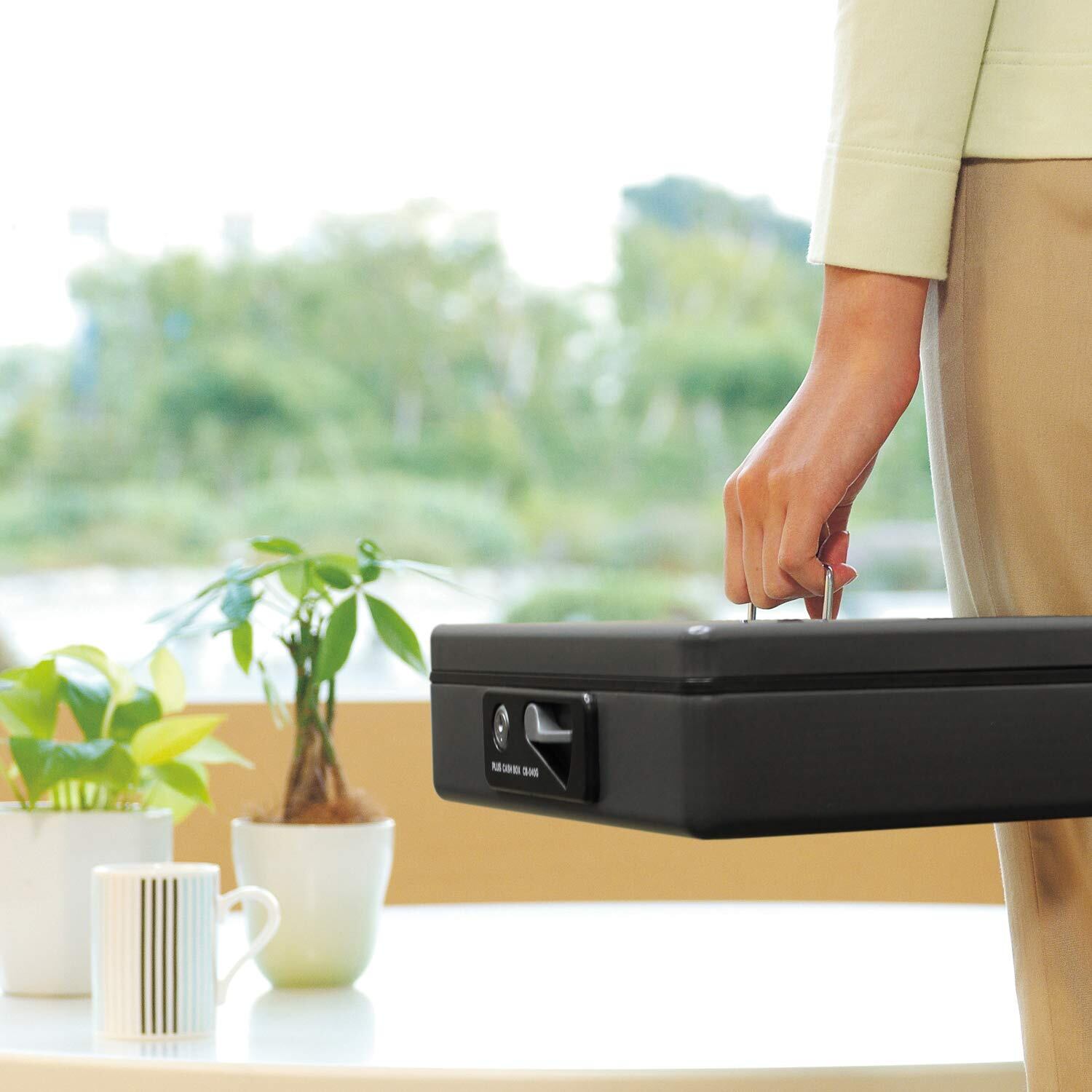 【大特価商品】プラス 金庫 手提金庫 小型 W300×D240×80mm ダークグレー 13-126