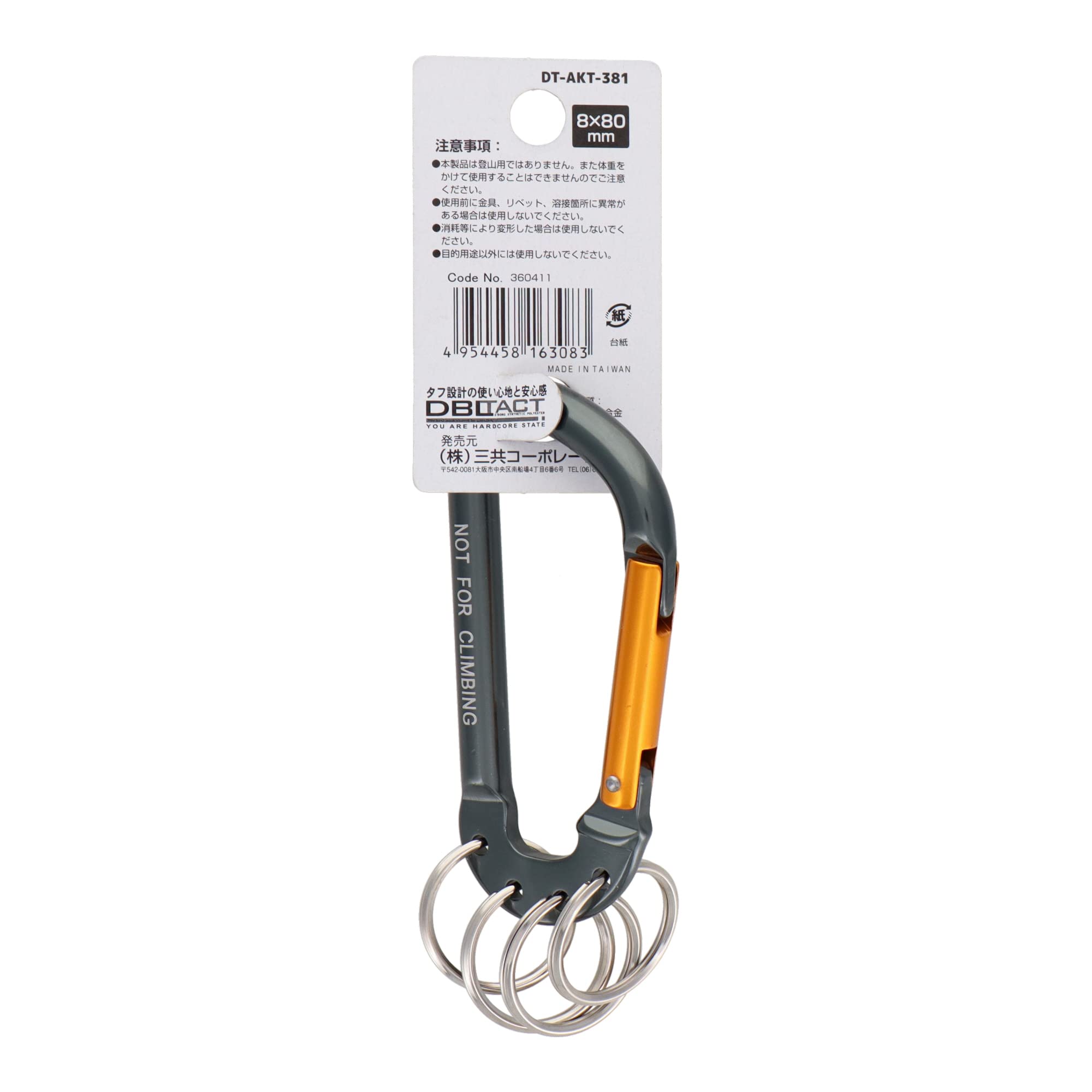 三共コーポレーション DBLTACT アルミカラビナ キーリング付 4連 ガンメタ×ゴールド DT-AKT-381