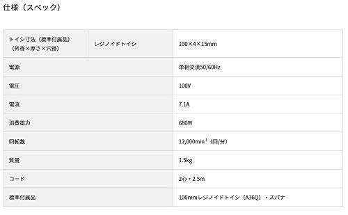 トイシ寸法(標準付属品):外径100×厚さ4×穴径15mm