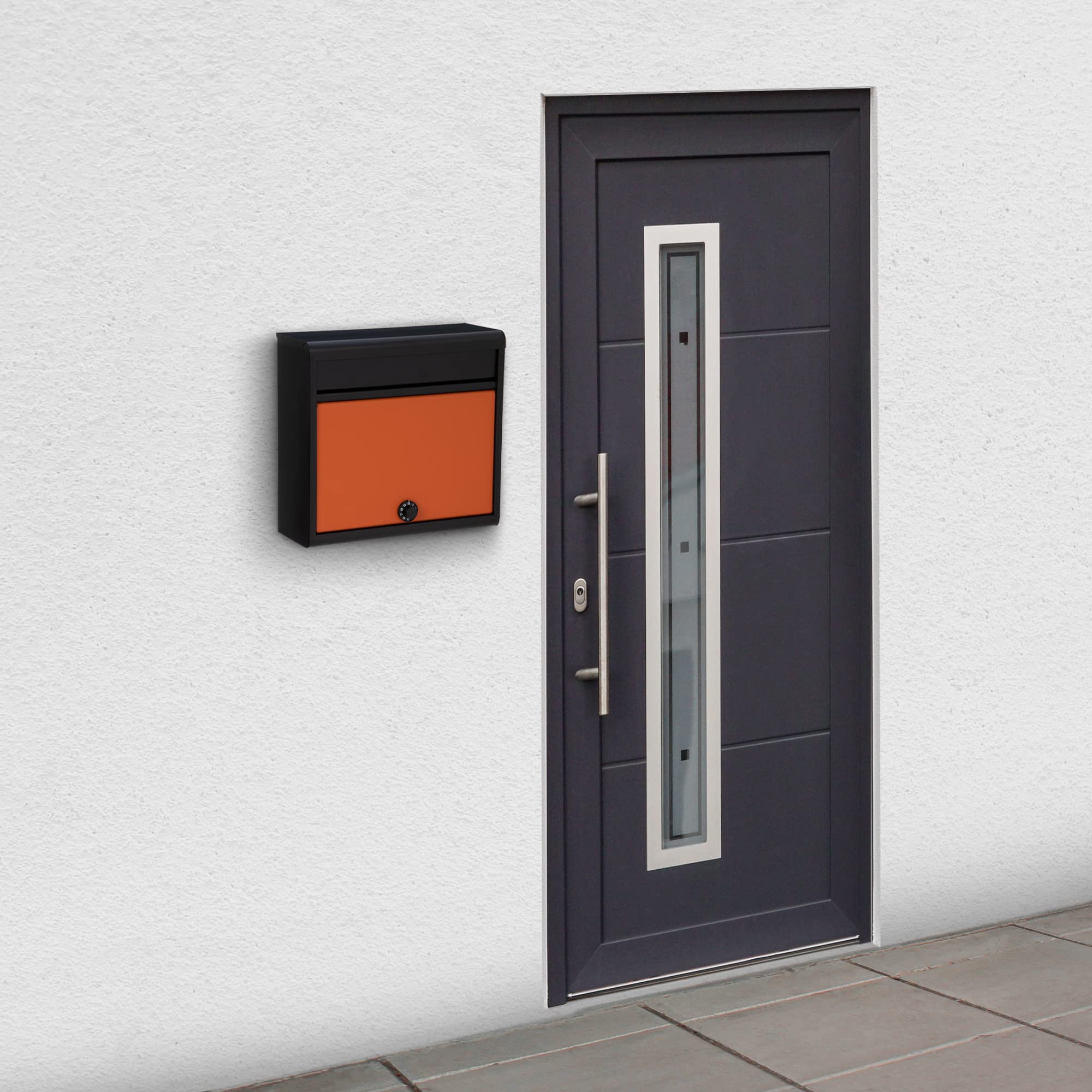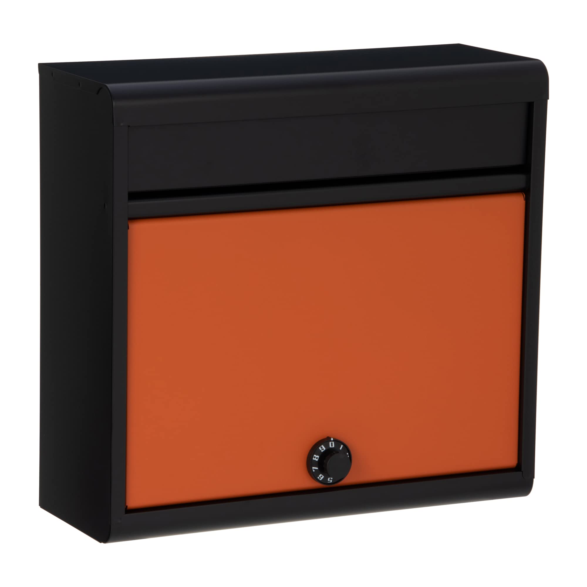 グリーンライフ ポスト 壁掛け【日本製】 スチール製 A4封筒(角形2号)対応 ダイヤル錠 スリム おしゃれ マットブラック/オレンジ FH-614D(MB/OR)