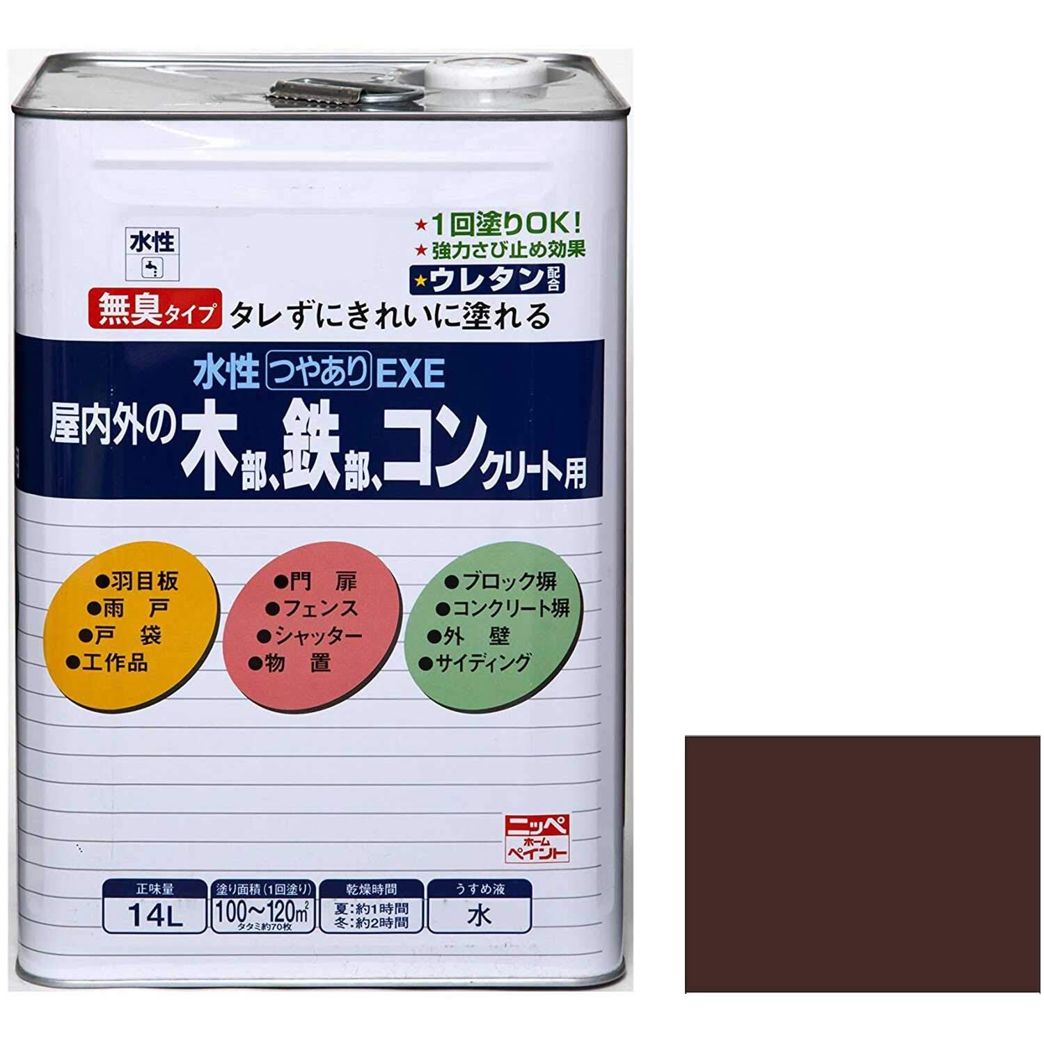 ニッペ ペンキ 塗料 水性つやありEXE 14L ブラックチョコレート 水性 つやあり 屋内外 日本製 4976124421150