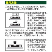 精度:水平気泡管±1.00mm/m=±0.0573度以内、垂直・45度気泡管±1.50mm/m=±0.0859度以内