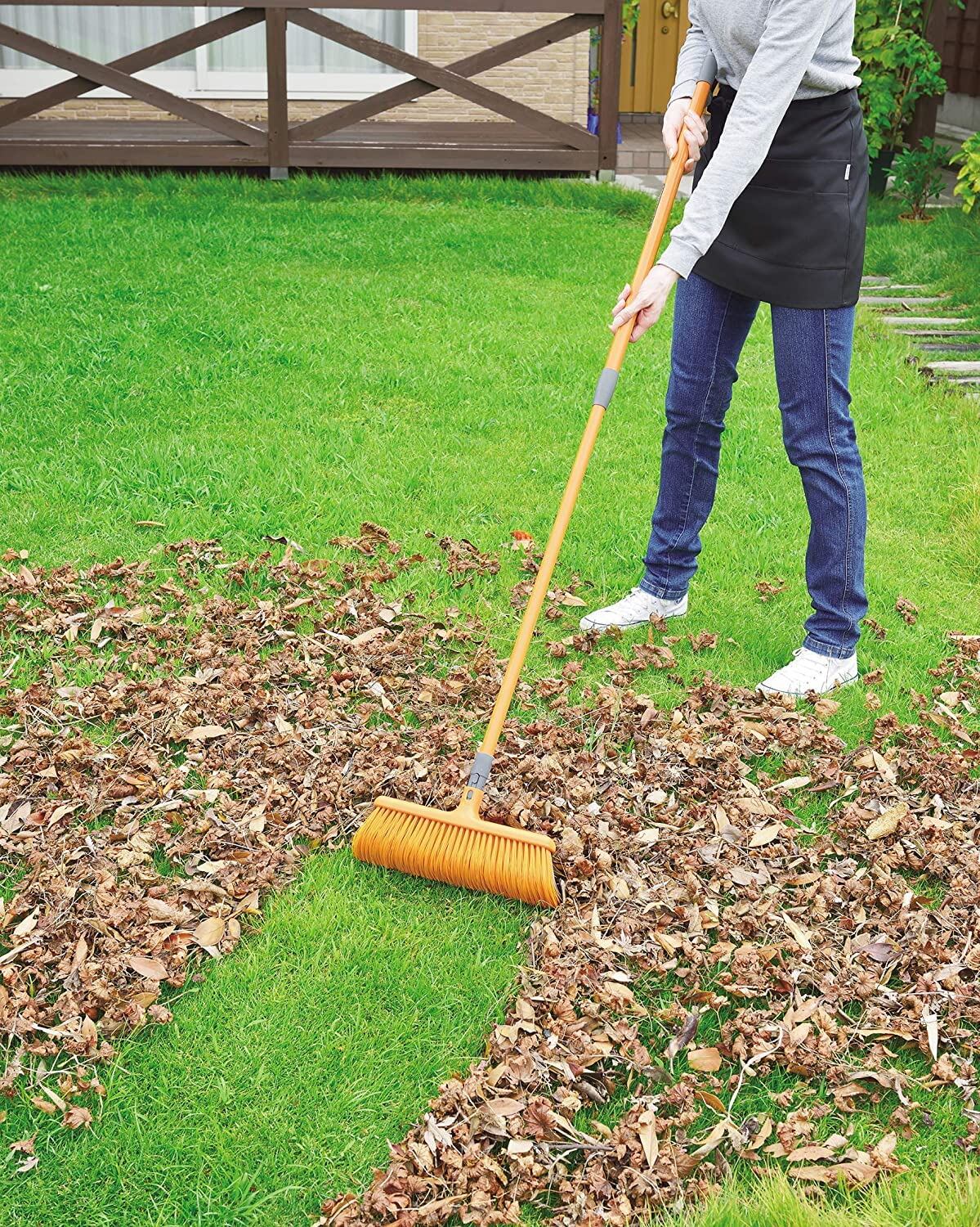 高儀(Takagi) マジカR(ル)ホーキ【2種類の毛&R形状】【全長約96~157cm伸縮式】【コンパクト収納】 マジカルほうき 芝生 ほうき 熊手 レーキ 落ち葉集め 玄関 ベランダ ガレージ掃除