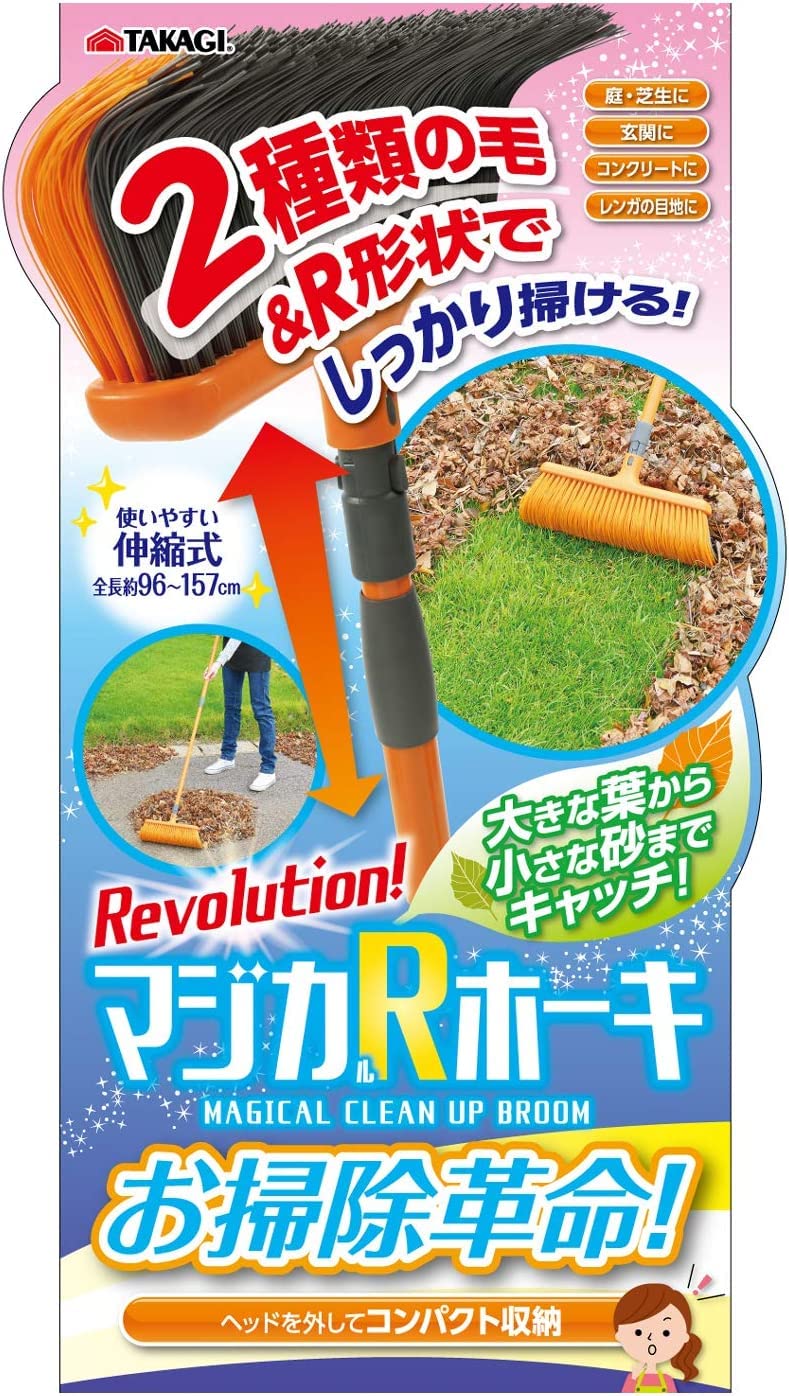 【最新商品】高儀(Takagi) マジカR(ル)ホーキ【2種類の毛&R形状】【全長約96~157cm伸縮式】【コンパクト収納】 マジカルほうき 芝生 ほうき 熊手 レーキ 落ち葉集め 玄関 ベランダ ガレージ掃除