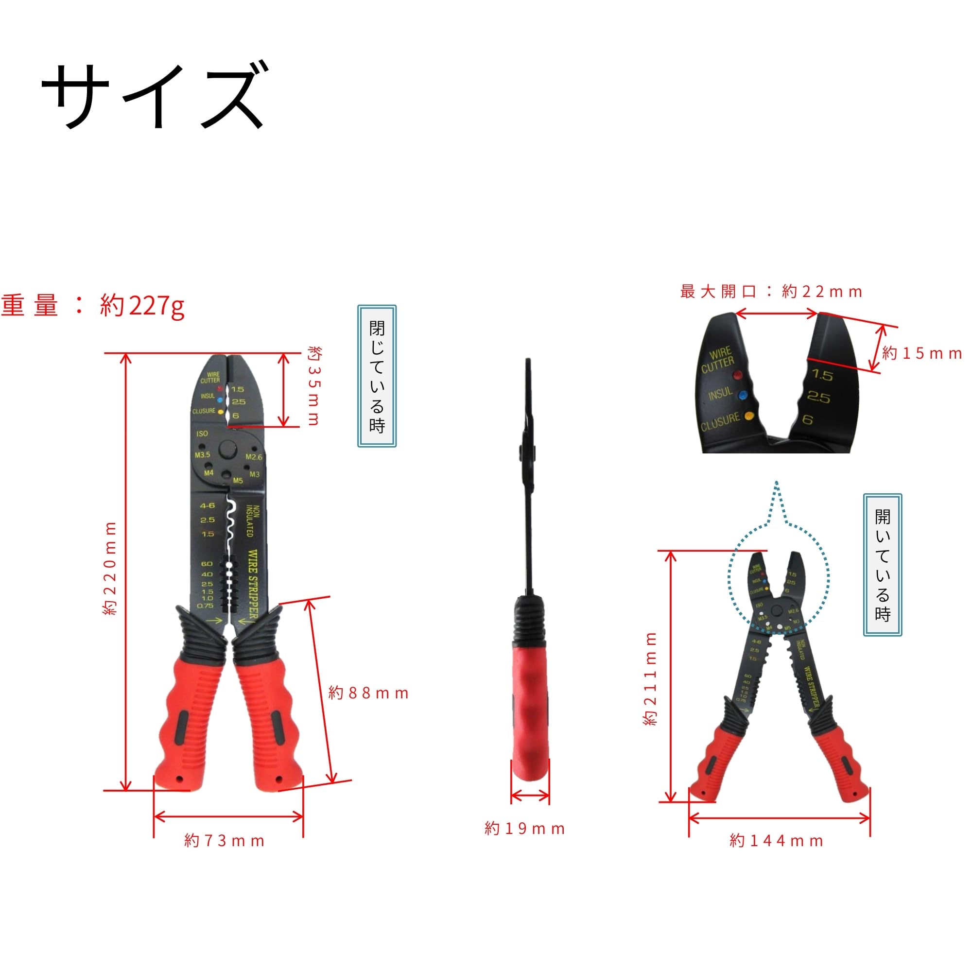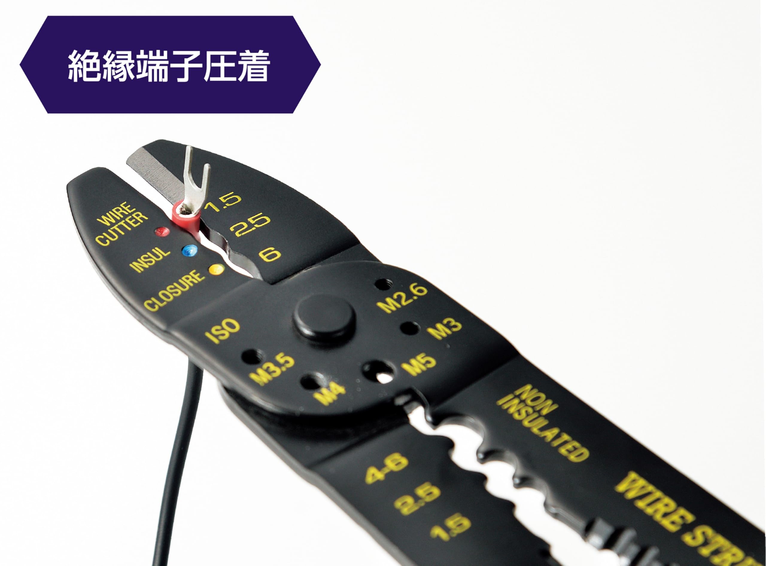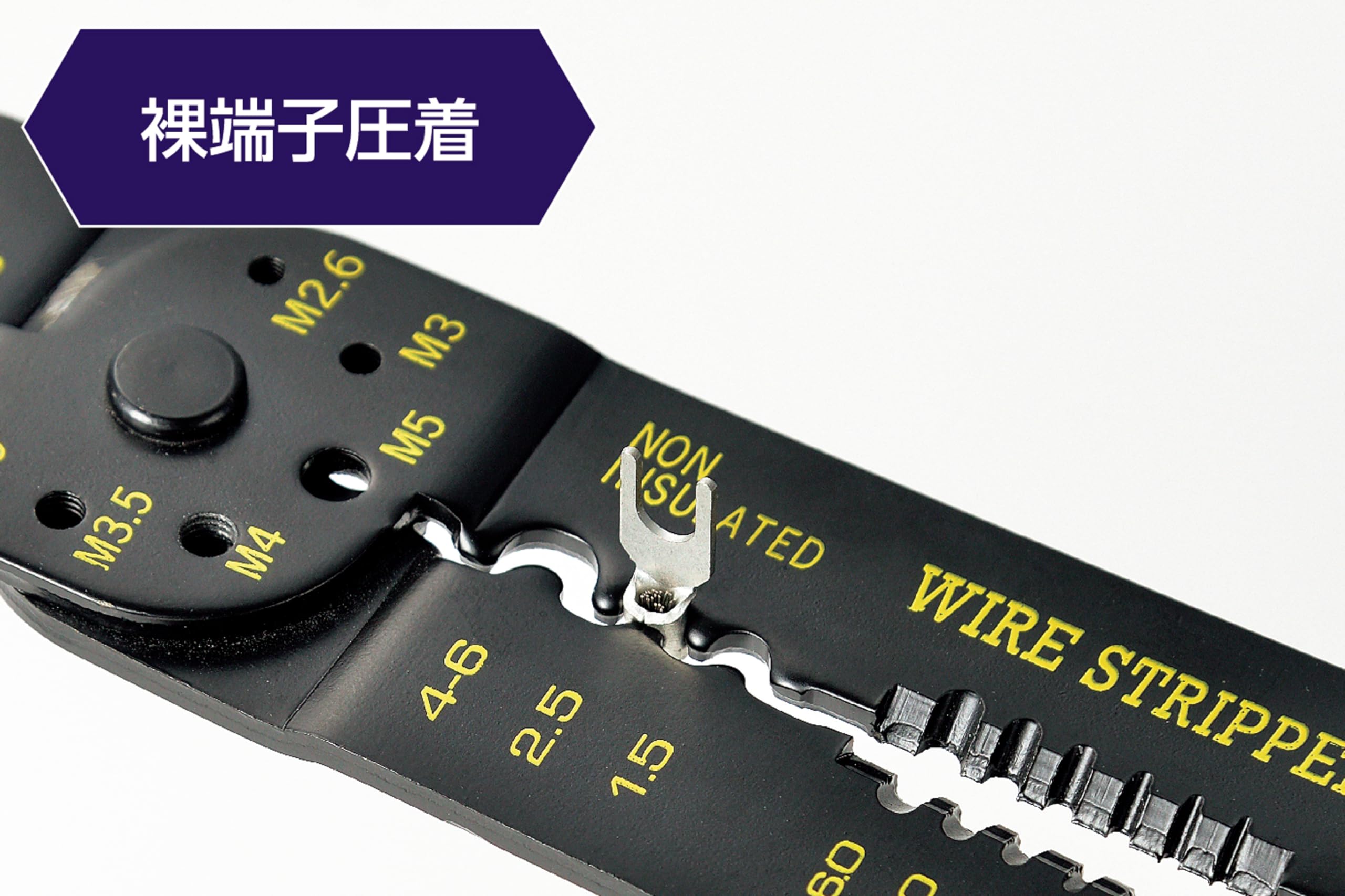 電線0.75・1.0・1.5・2.5・4.0・6.0mmの絶縁被覆を簡単に剝ぎ取ることができます。サイズに合った位置で使用してください。
