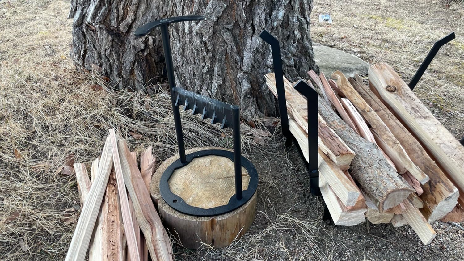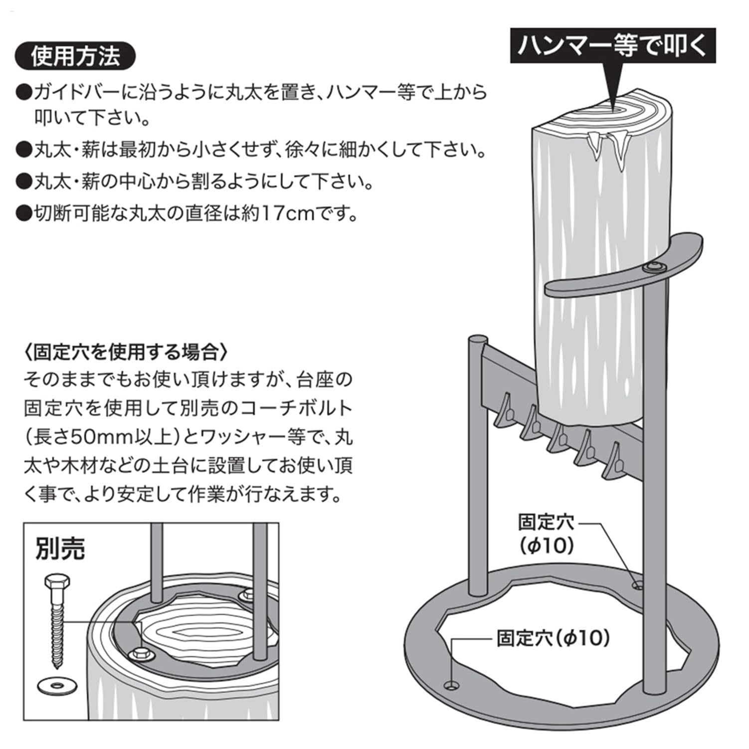 ・薪を設置して、上からハンマーで叩く安全仕様で、不慣れな方でも安全に作業ができる