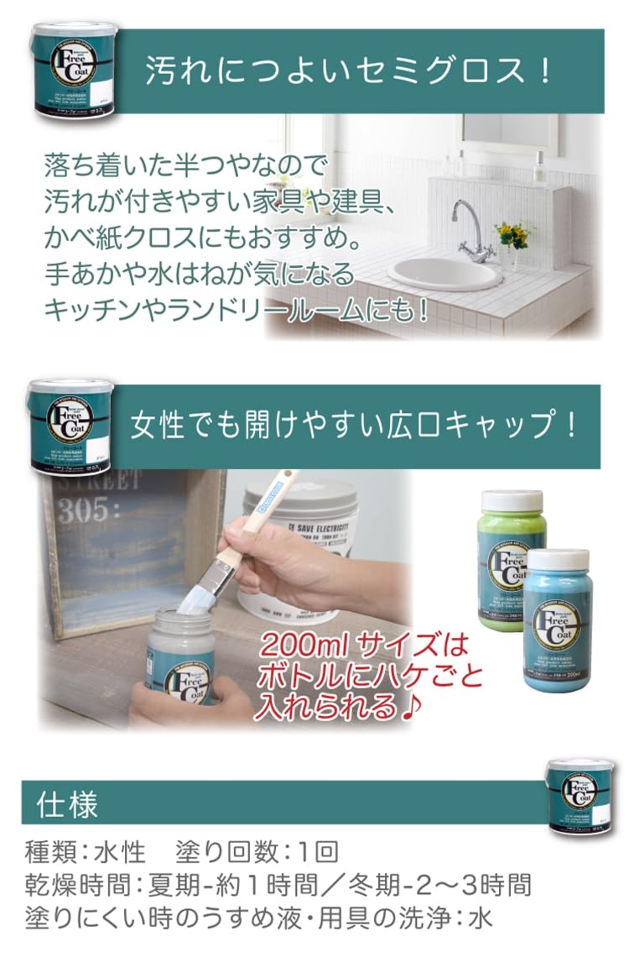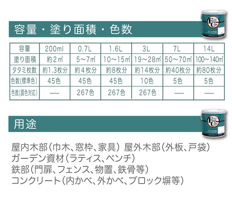 お気に入りのカラーがきっと見つかる全312色!落ち着いた質感の3分ツヤ。 ちょっとした小物のペイントに便利なかわいい200mlボトルから、 住まいのリノベーションにもおすすめの大容量サイズまでバリエーションいろいろ。 建築基準法対応製品F