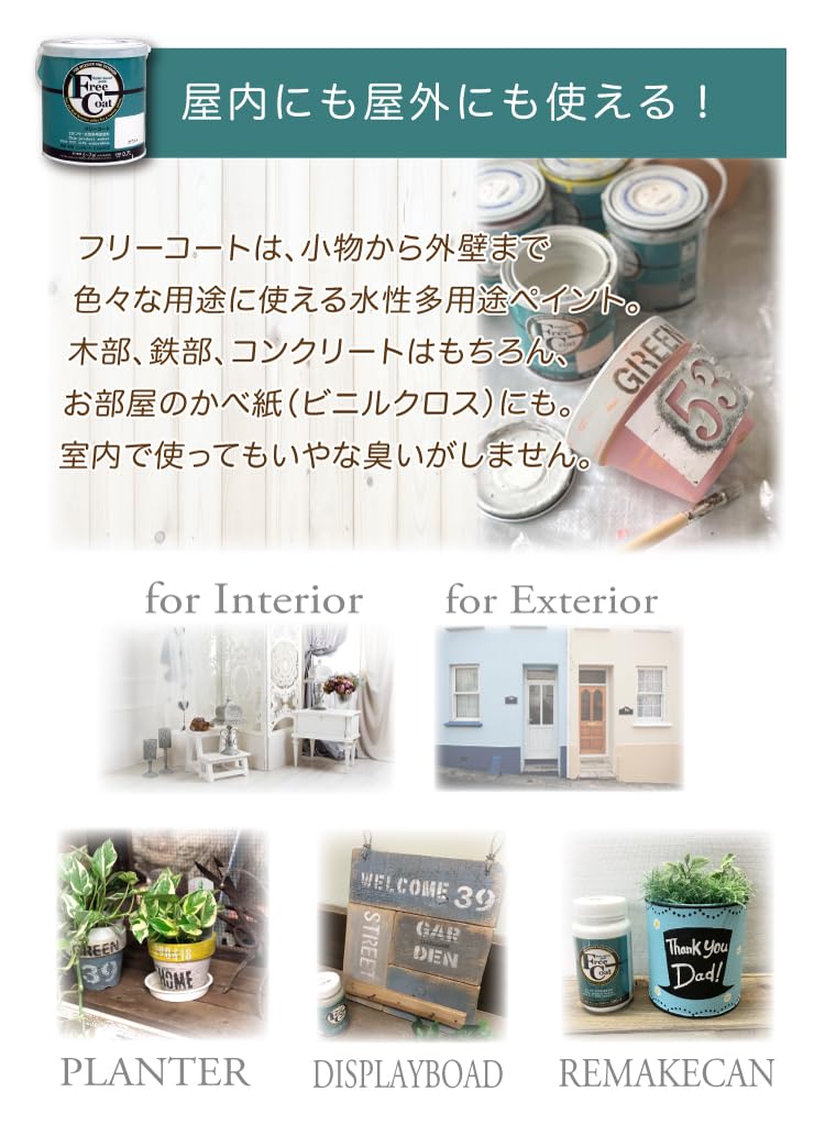 木、鉄、コンクリート、かべ紙など屋内外に塗れます