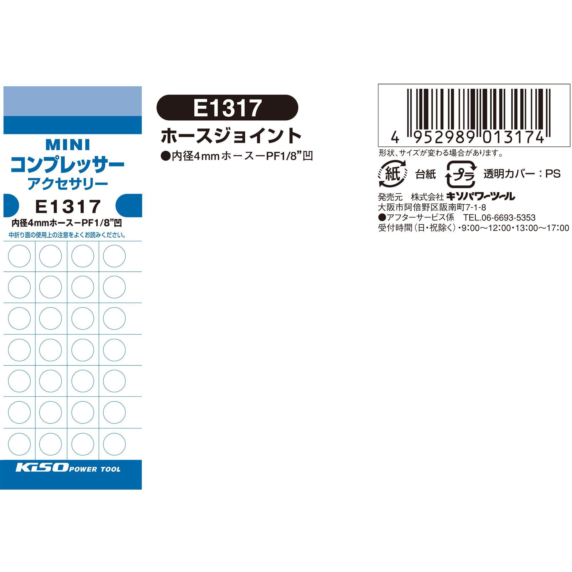 【限定大特価】キソパワーツール ホースジョイント 【内径4mmホース用-G1/8凹】 E1317