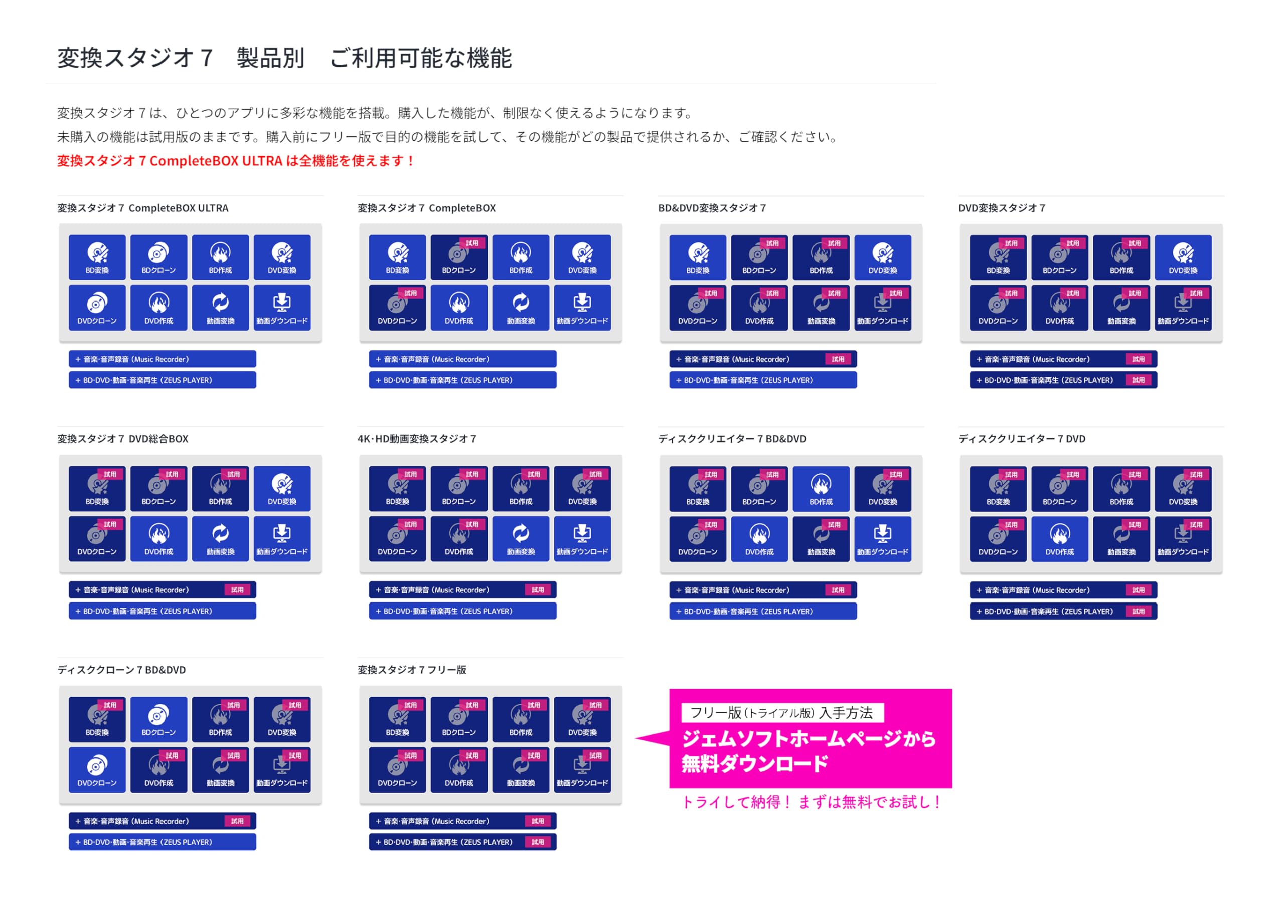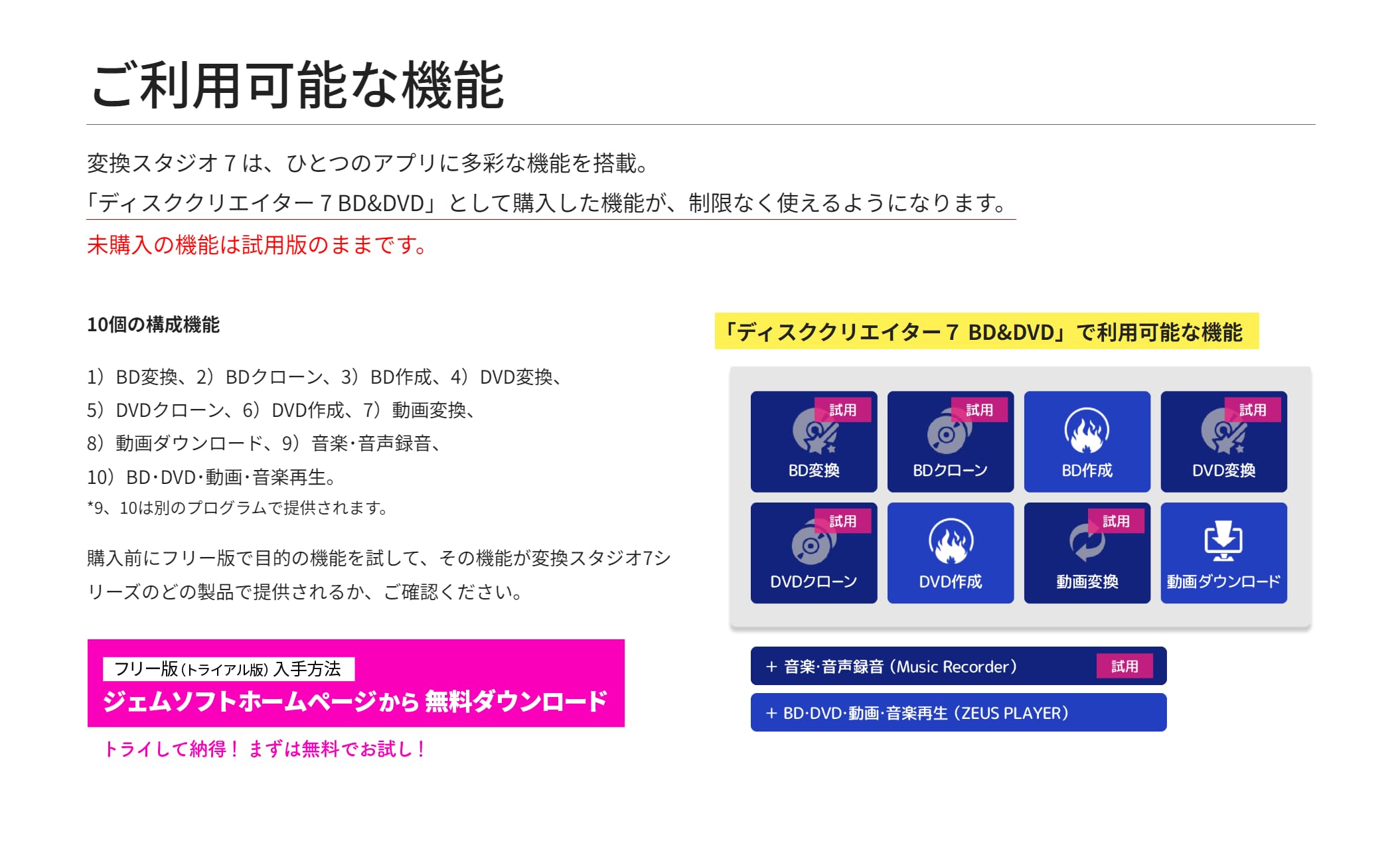 変換スタジオ7にはフリー版があります。フリー版でお試し、納得してからご購入ください。( gemsoft.jp/download )
