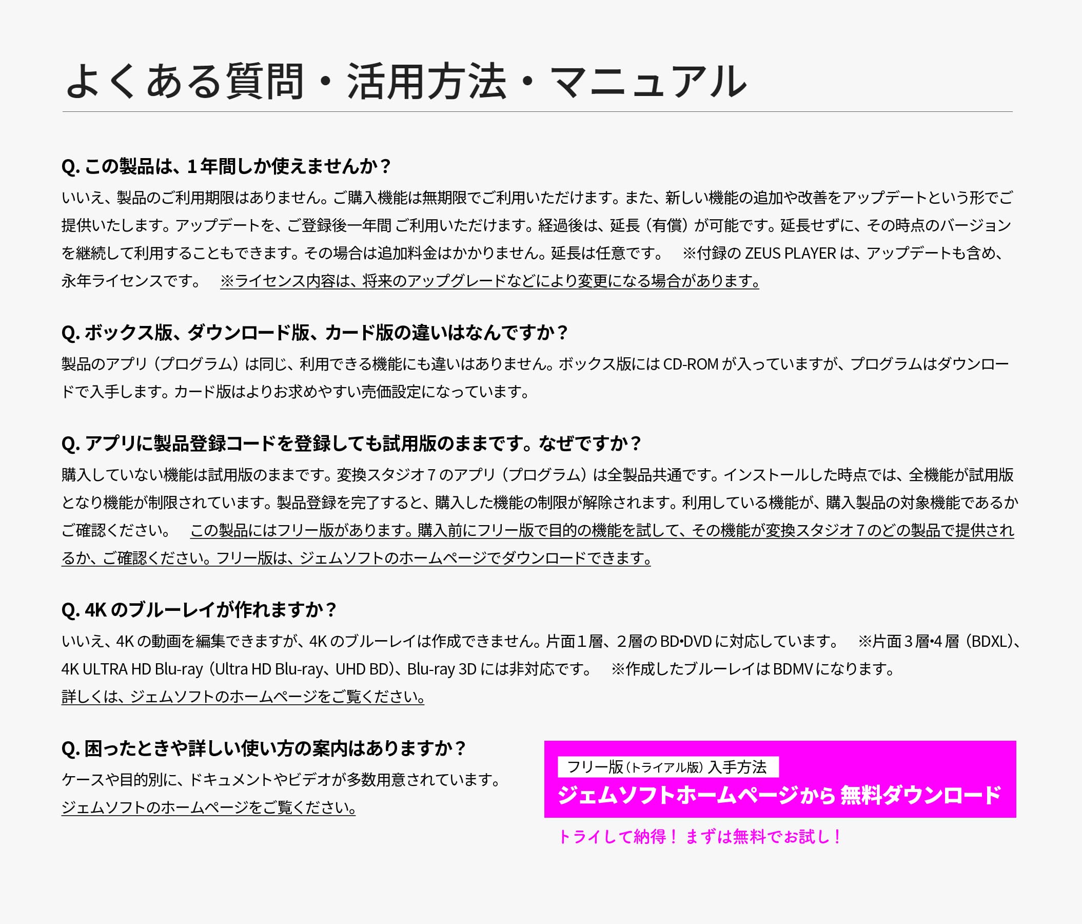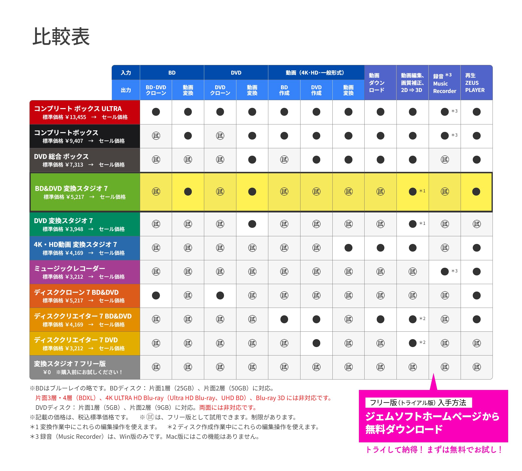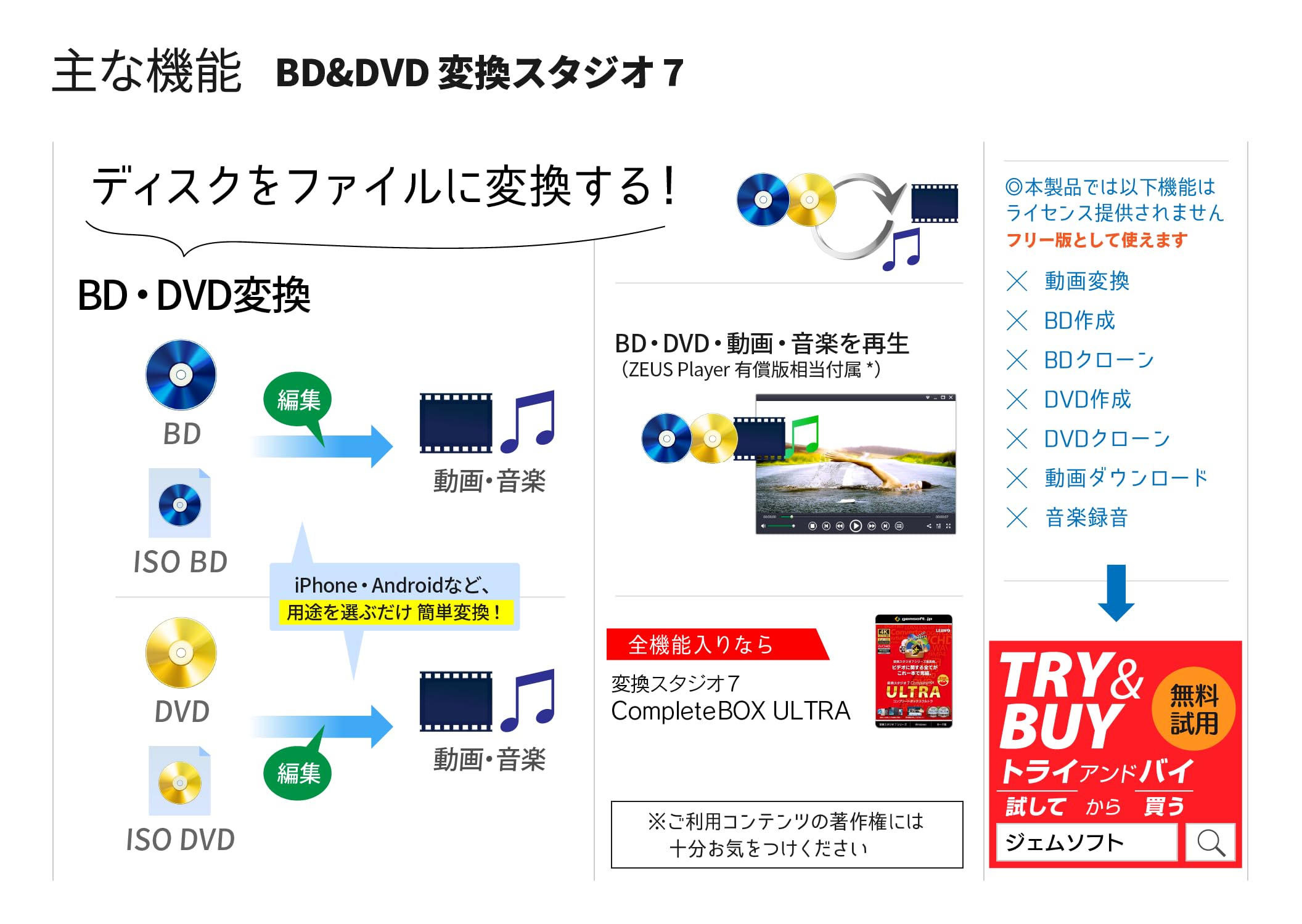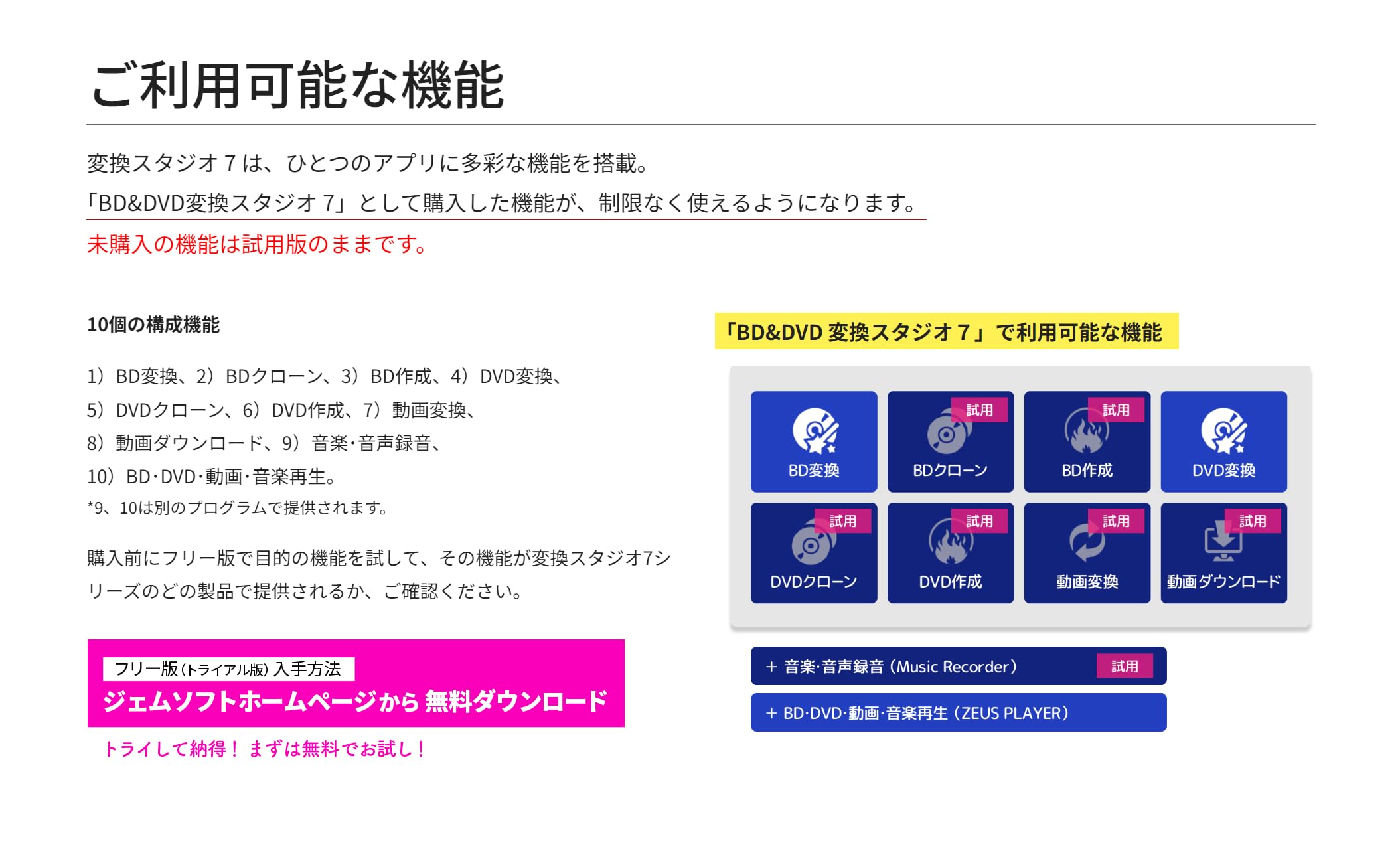 変換スタジオ7にはフリー版があります。フリー版でお試し、納得してからご購入ください。( gemsoft.jp/download )