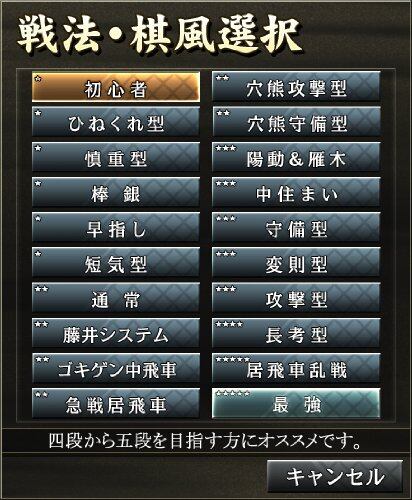 【棋力設定が自由自在「厳選20種の戦法・棋風」】