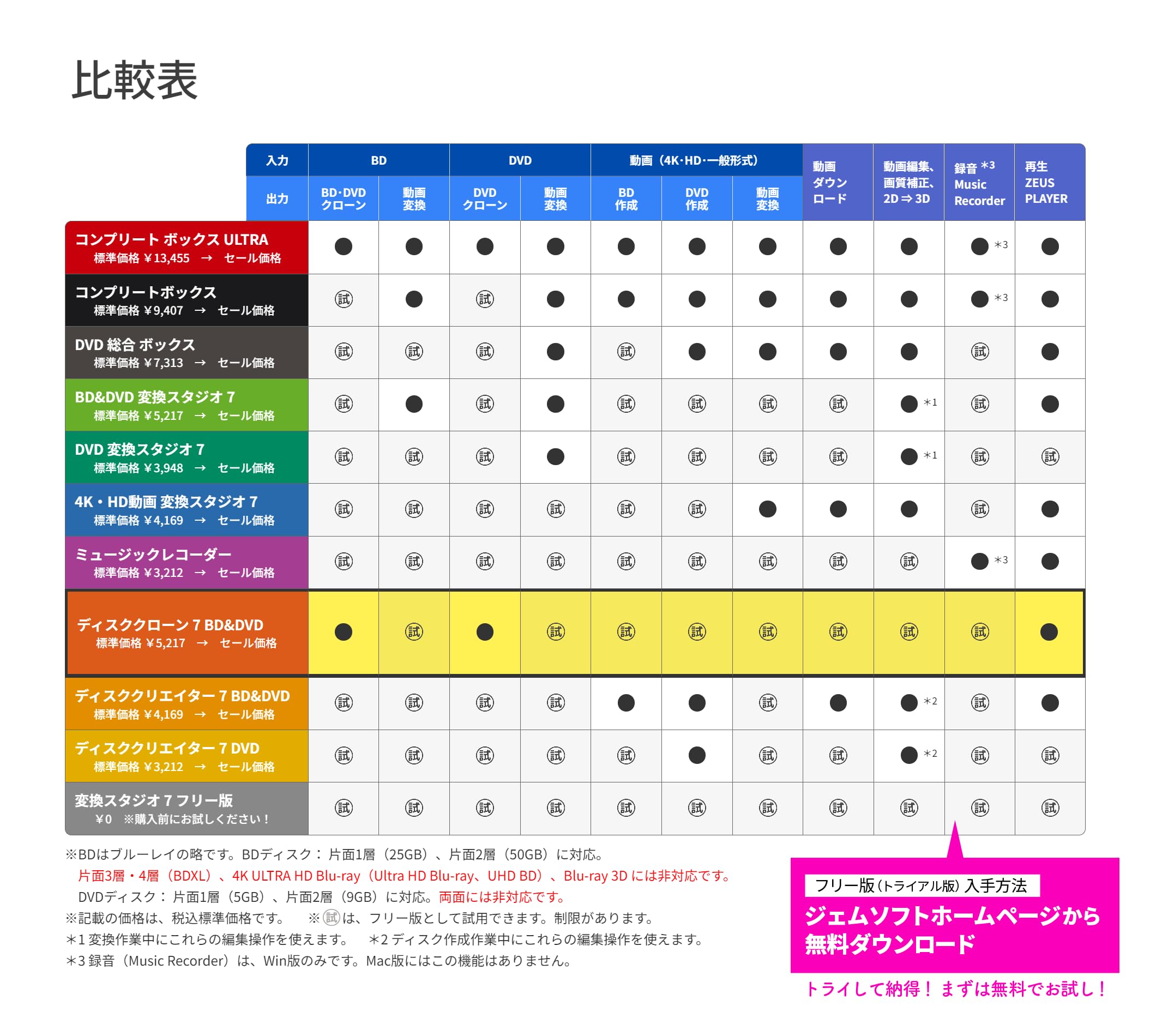 変換スタジオ7にはフリー版があります。フリー版でお試し、納得してからご購入ください。( gemsoft.jp/download )