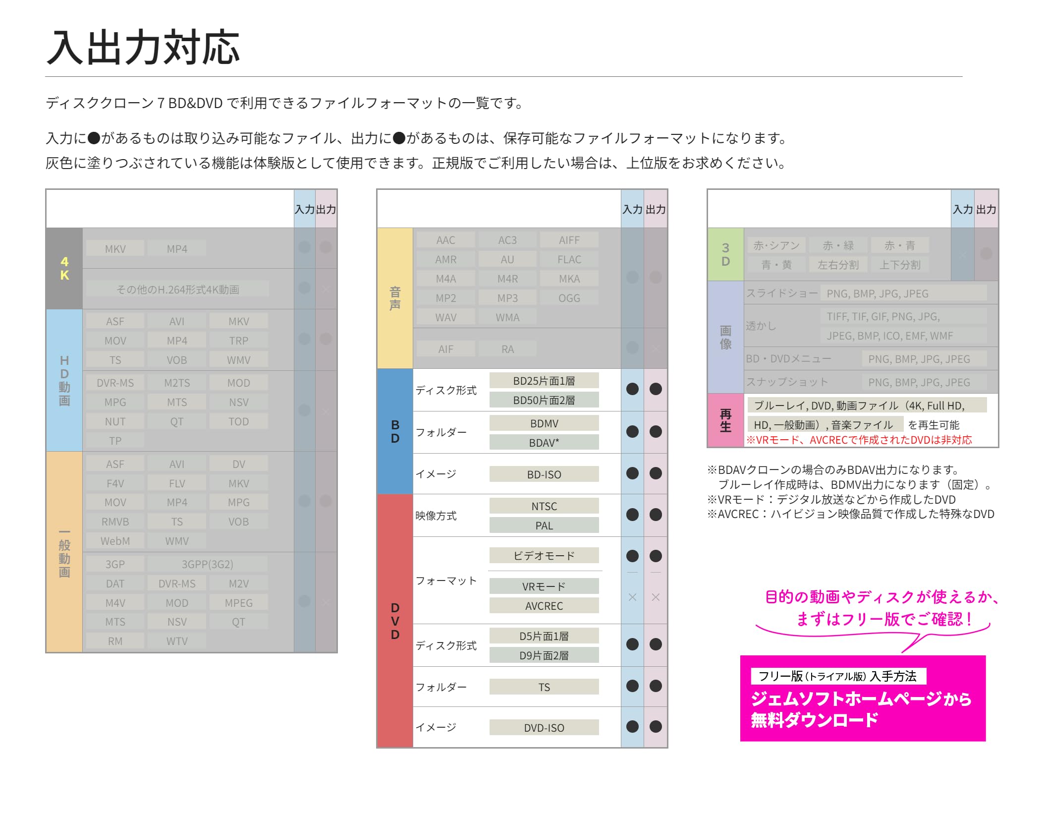 BDMV・BDAVのクローンに対応。