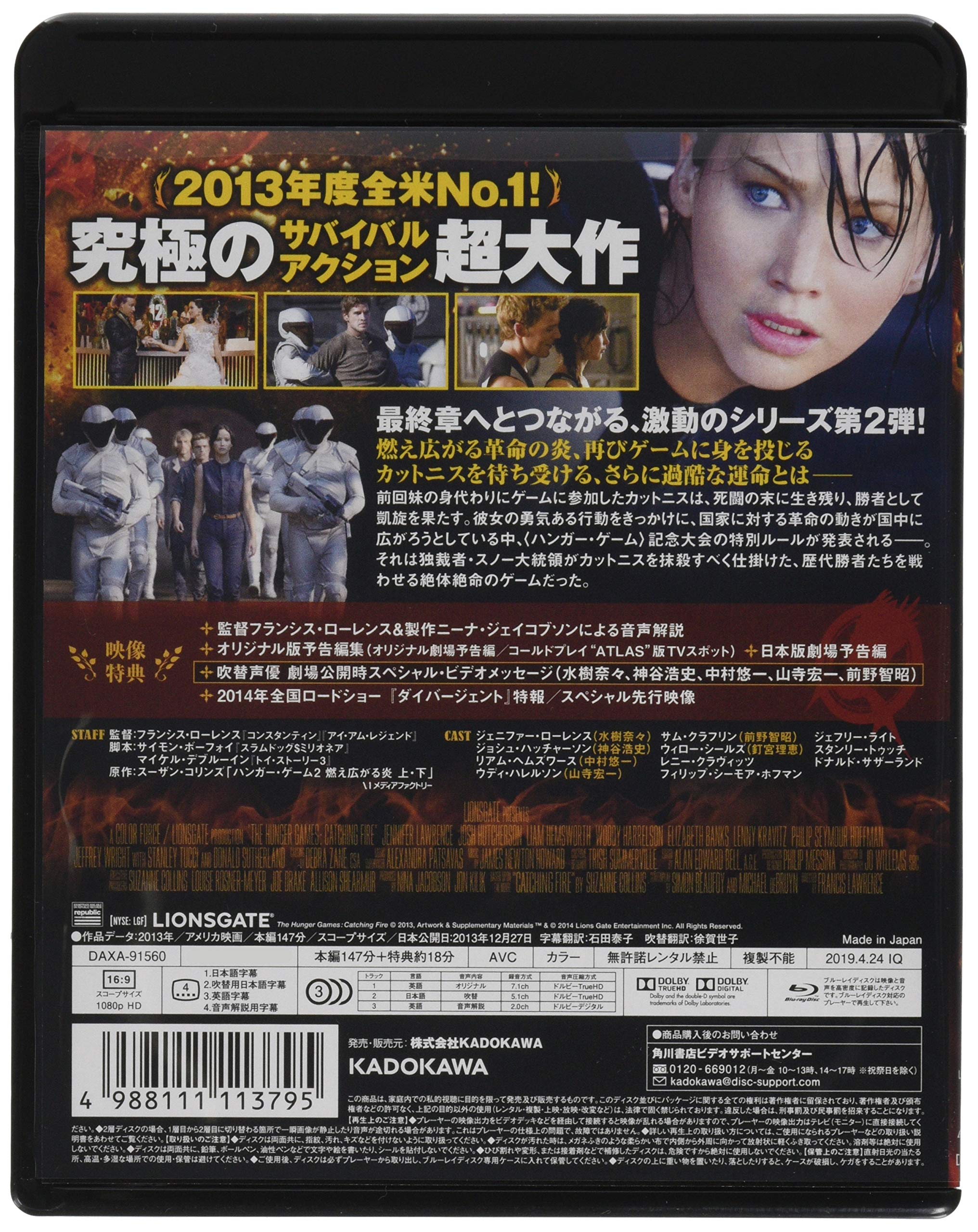 スーザン・コリンズの同名ベストセラーシリーズの映画化第2弾。幼い妹の身代わりとしてハンガー・ゲームに自ら志願し生き残ったカットニス。節目となる第75回大会の開催を前に、特別ルールが発表される。“洋画Blu-ray1500円(税抜)シリーズ”。