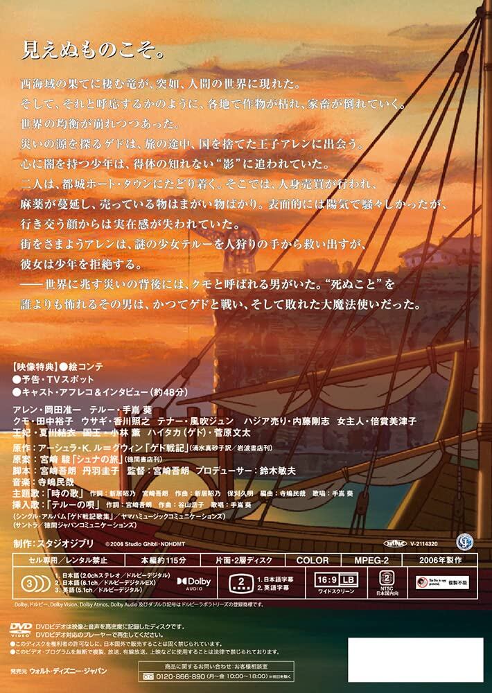 西海域の果てに棲む竜が、突如、人間の世界に現れた。そして、それと呼応するかのように、各地で作物が枯れ、家畜が倒れていく。世界の均衡が崩れつつあった。災いの源を探るゲドは、旅の途中、国を捨てた王子アレンに出会う。心に闇を持つ少年は、得体の知れない“影"に追われていた。二人は、都城ホート・タウンにたどり着く。そこでは、人身売買が行われ、麻薬が蔓延し、売っている物はまがい物ばかり。表面的には陽気で騒々しかったが、行き交う顔からは実在感が失われていた。街をさまようアレンは、謎の少女テルーを人狩りの手から救い出すが、彼女は少年を拒絶する。