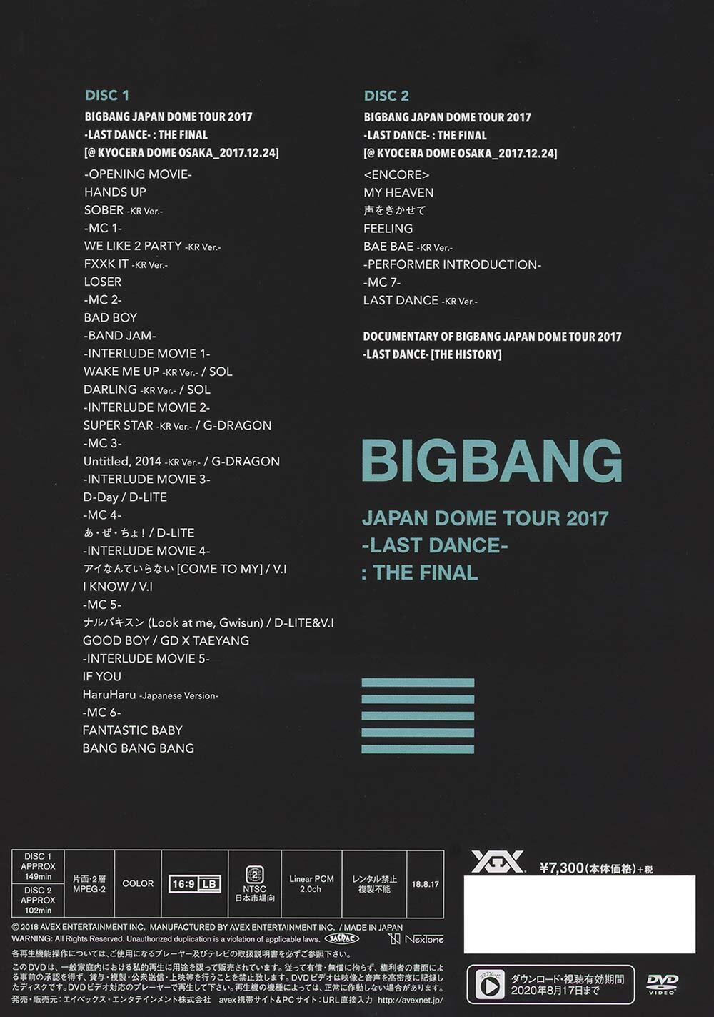 BIGBANG JAPAN DOME TOUR 2017 -LAST DANCE- : THE FINAL(DVD2枚組)(スマプラ対応)