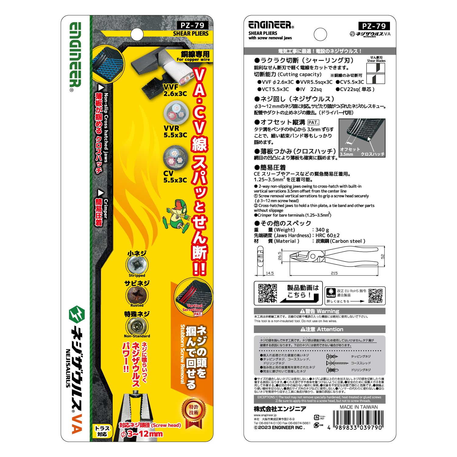 ENGINEER エンジニア ネジザウルスVA 電気工事士試験対応 なめたネジ/潰れたネジ/錆びたネジ φ3~9.5mm用 PZー79