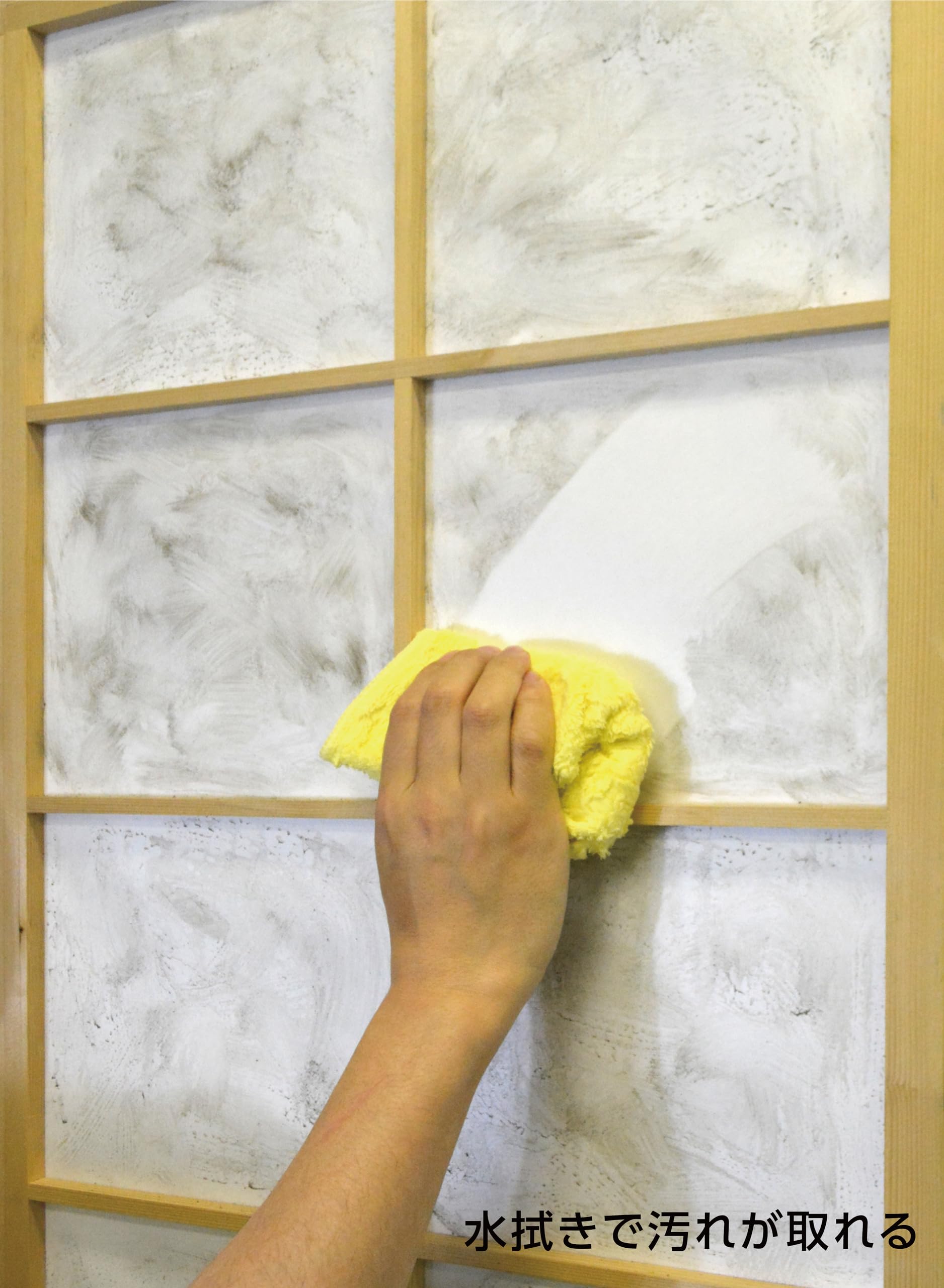 ●障子枠が湿っていたり、「はがし剤」や「洗剤」が残っていると接着しないことがありますので、水ぶきをした後、枠を充分に乾燥させてから貼ってください。