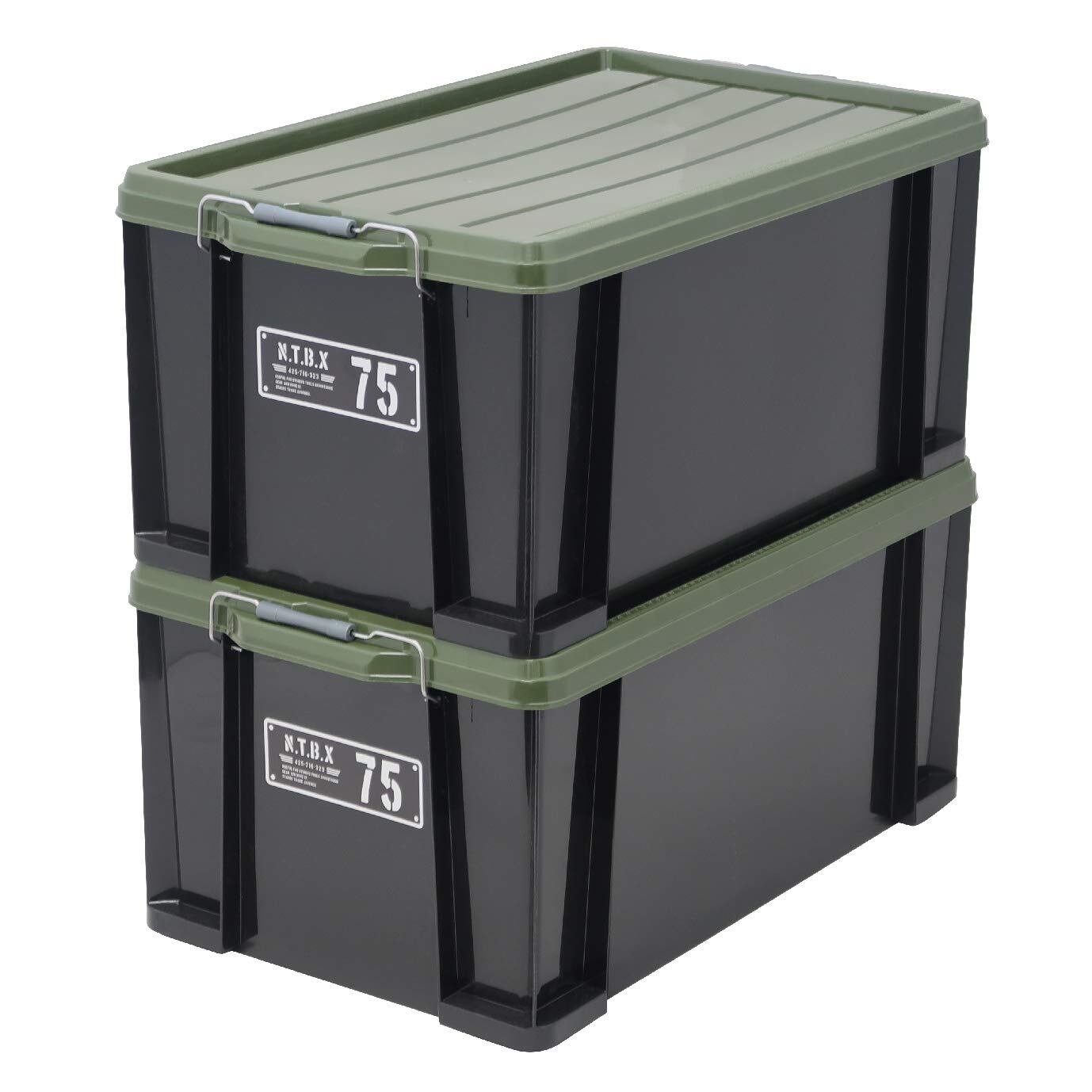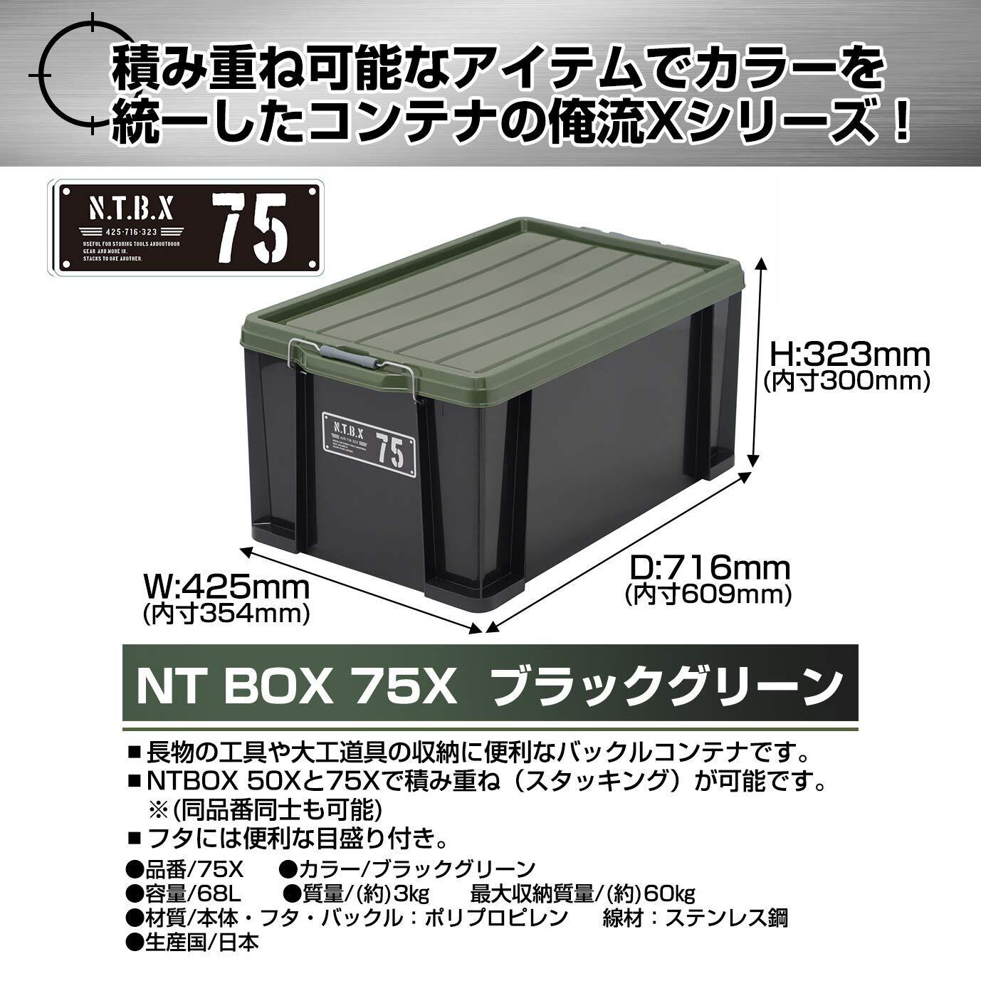 JEJアステージ(JEJ Astage) 収納ボックス 日本製 積み重ね [Xシリーズ NTボックス #75] ブラックグリーン 防災 幅42.5×奥行72×高さ32cm