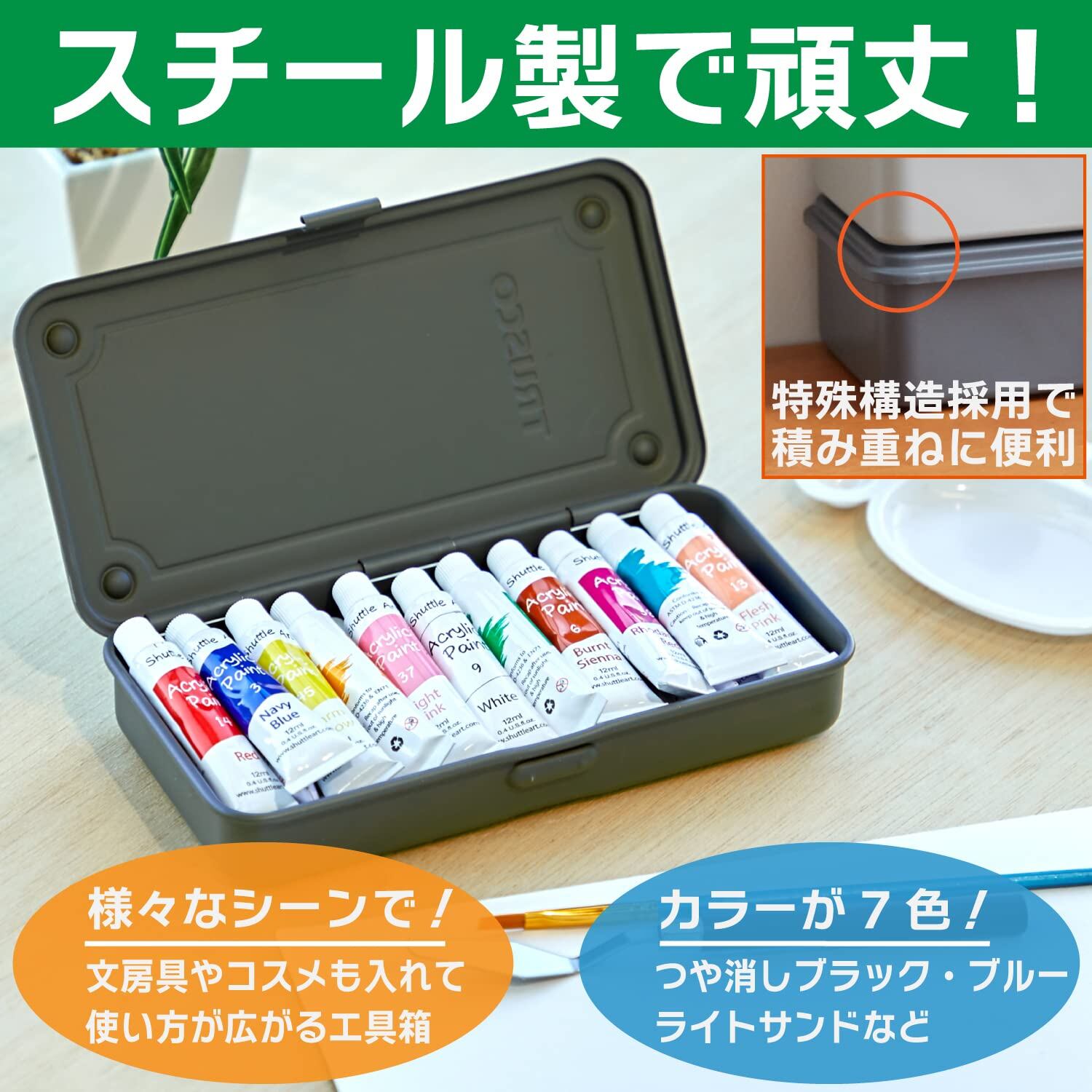 ●ハードな使用に耐える頑丈なプレス一体型です。●片開き構造です。●四隅に横滑り防止用凹凸が付いており積み重ねに便利です。●中皿はついていません。