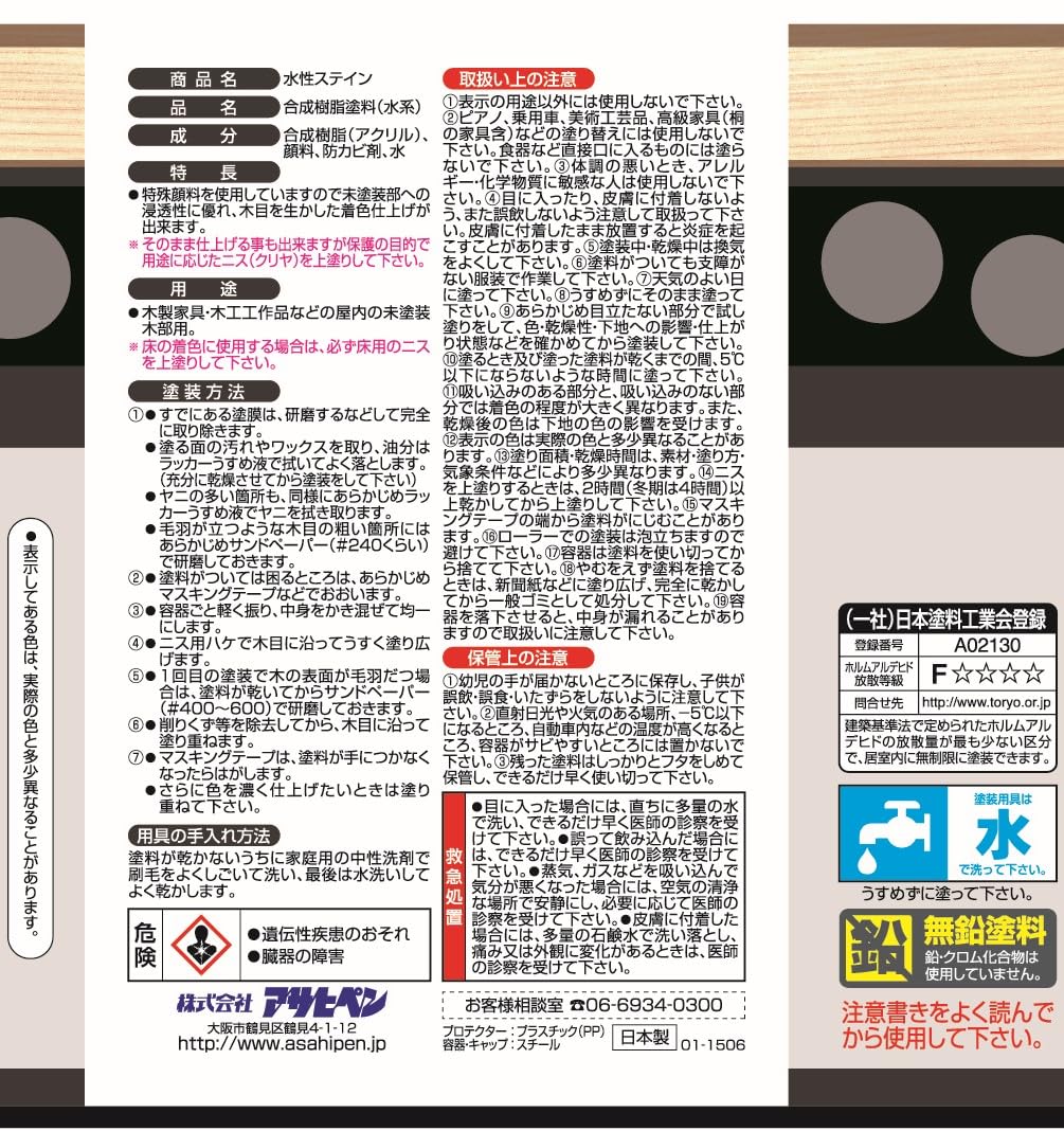 アサヒペン 塗料 ペンキ 水性ステイン 1L チーク 水性 艶消し ステイン仕上げ 上塗り不要 シックハウス対策品 日本製