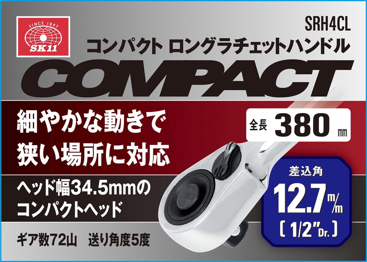 SK11(エスケー11) ロングラチェットハンドル 差込角12.7 全長380mm SRH4CL