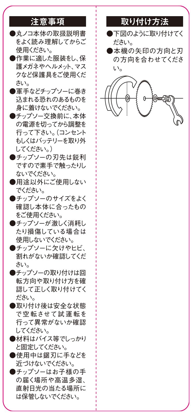 特徴1:フッ素コートで挽きが軽い、腰入台金により直進性に優れたチップソー