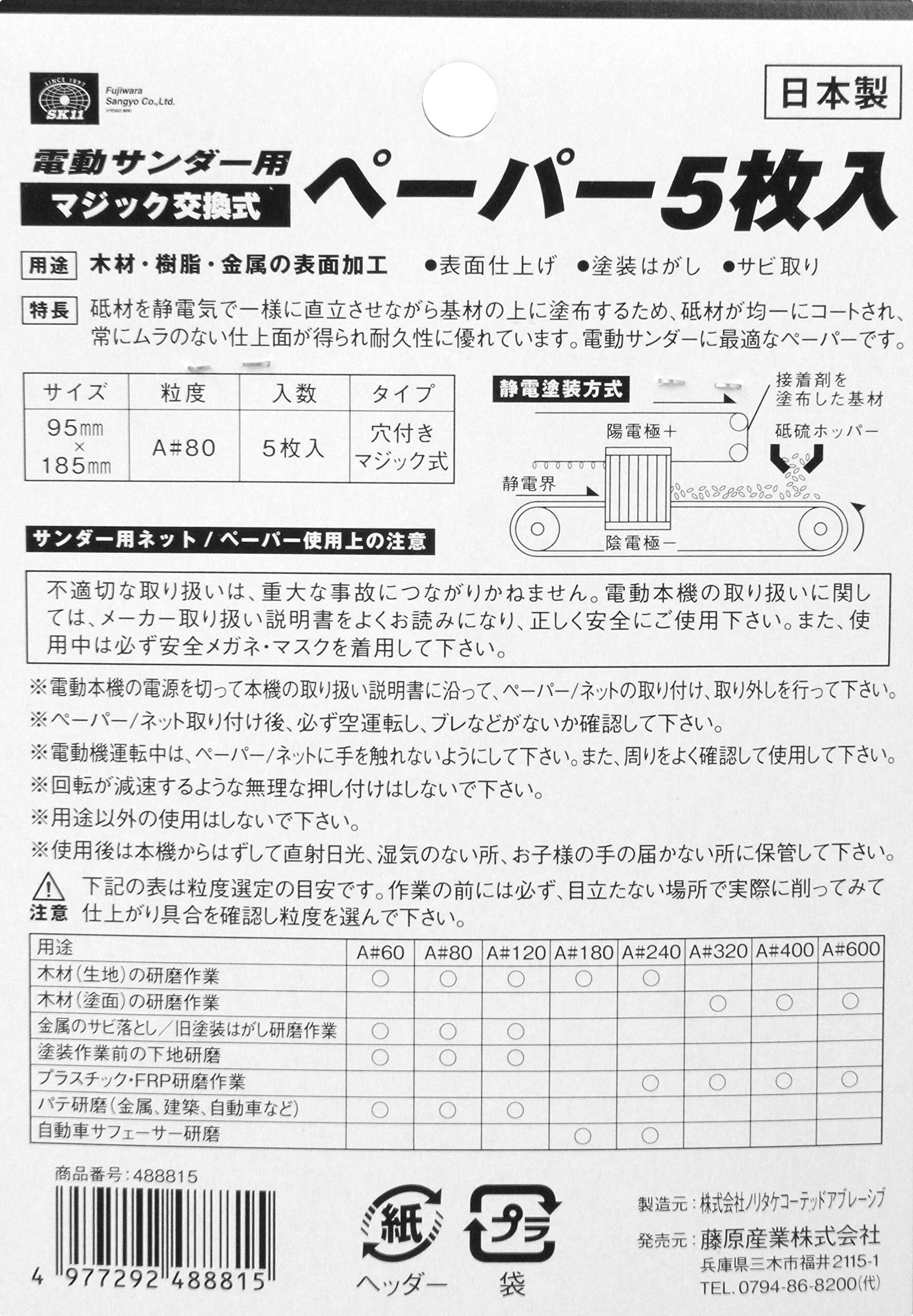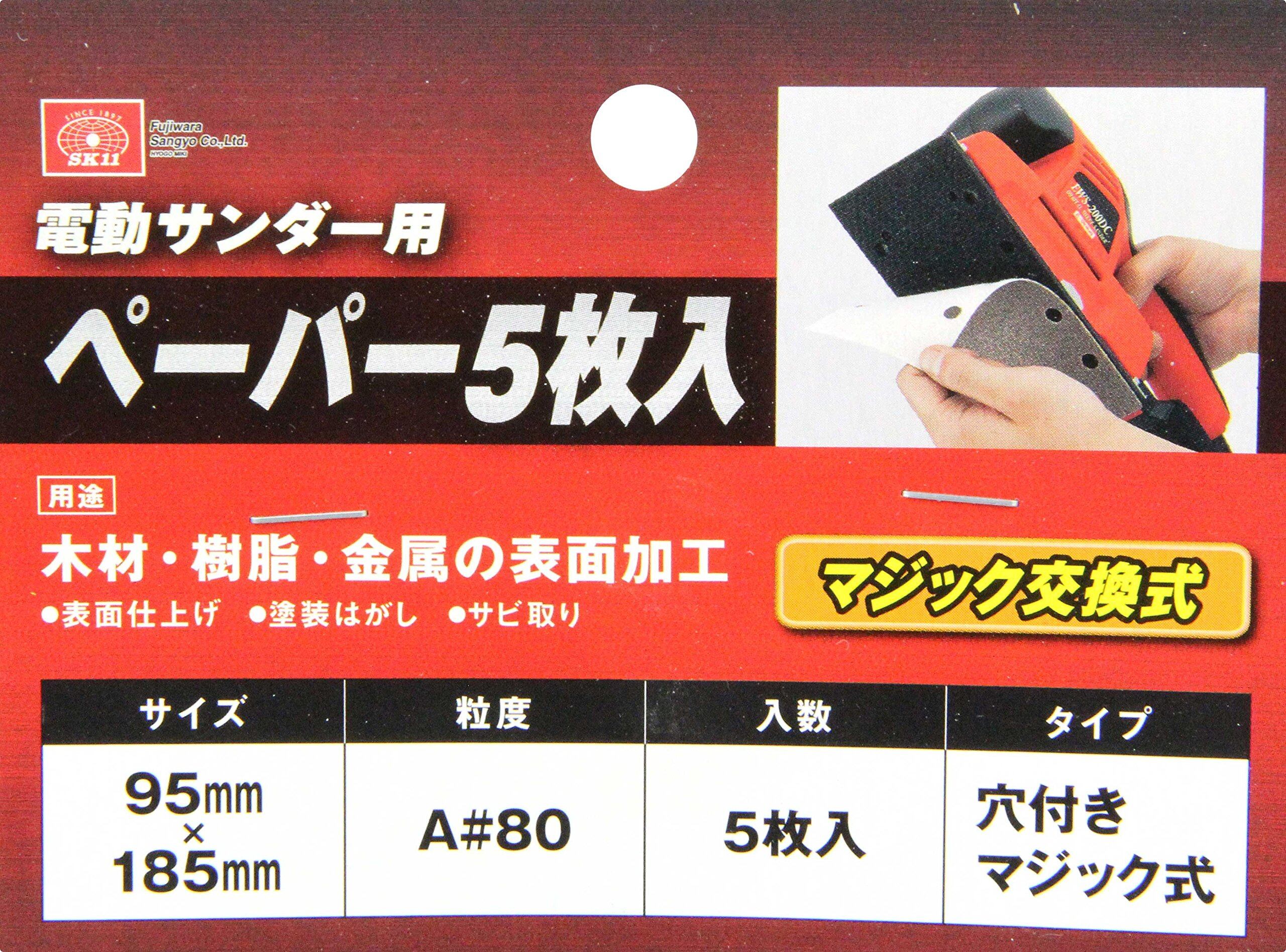 【処分セール】SK11(エスケー11) 電動サンダー用ペーパー 5枚入り マジック式 A#80