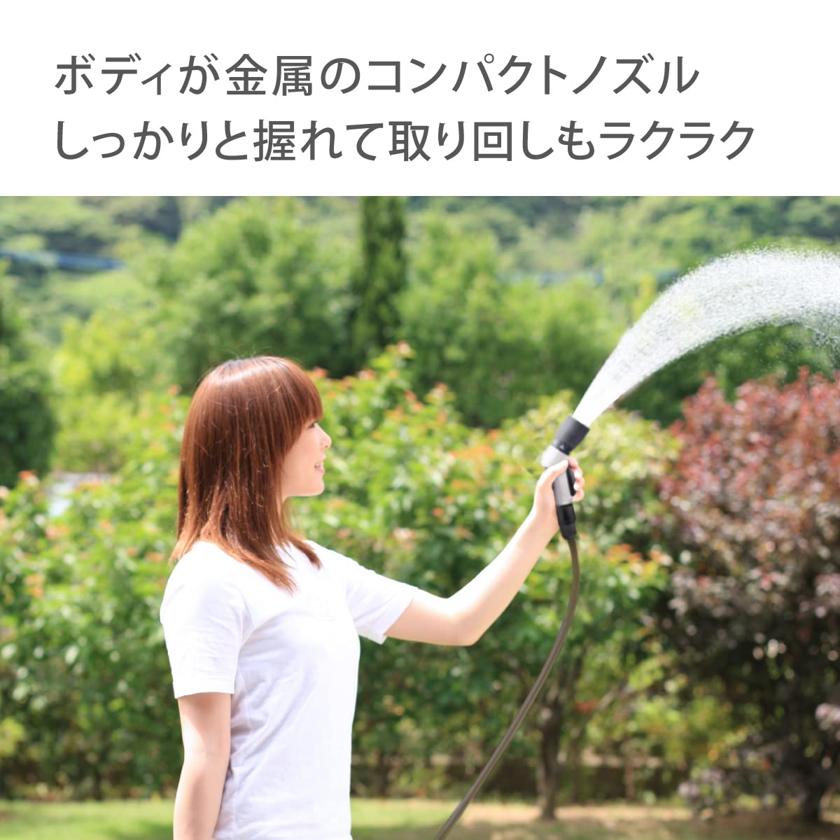 ボディが金属でコンパクトタイプの散水ノズルです。